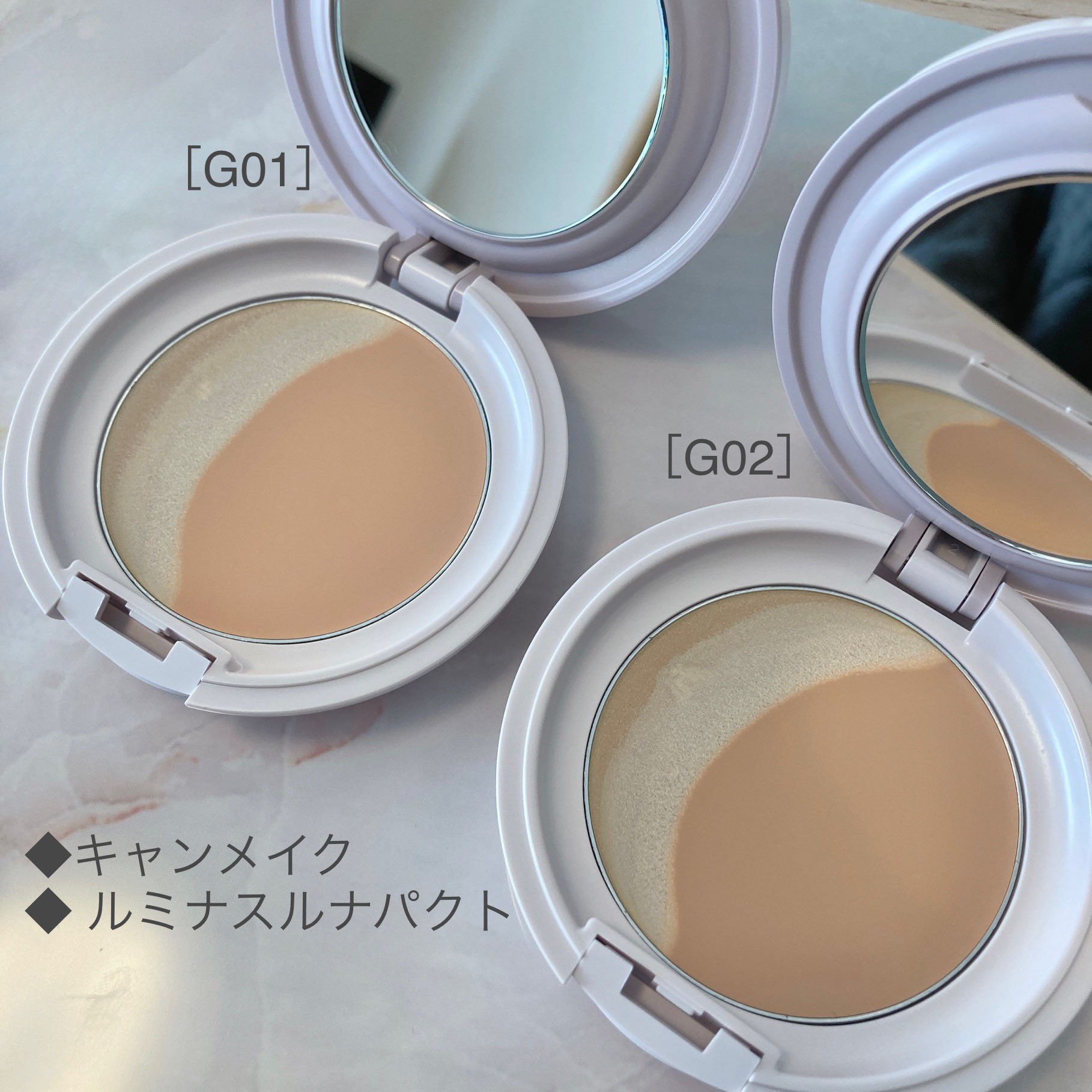 キャンメイクルミナスルナパクトG01ライトベージュSPF値も高く良い商品だなと思ったのですが密着度が弱い崩れやすさを感じました10代から20代初めの方が日焼け止めの代わりに使うくらいうすーく使うと綺麗かも✨使用料や組み合わせなどちょっと難しか...