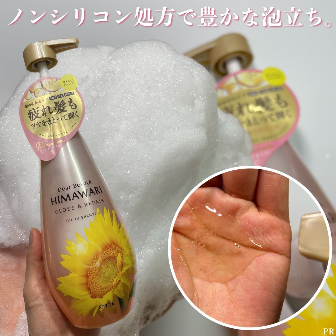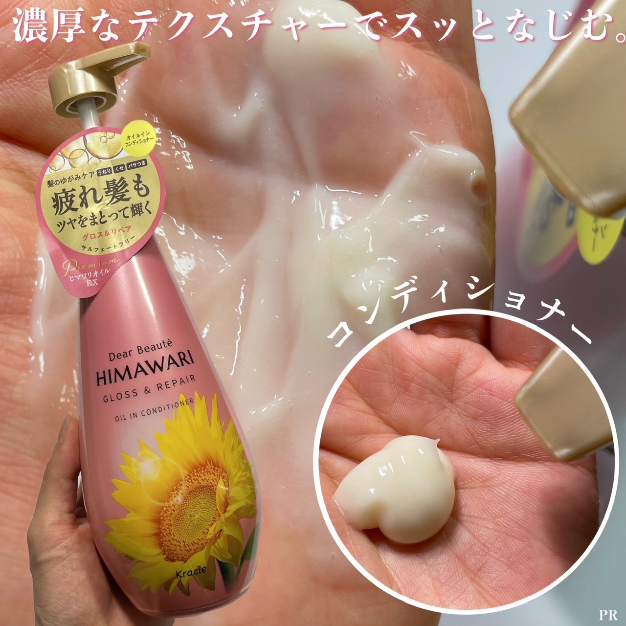 ツヤを失った疲れ髪も、毛先までツヤをまとってスルンと輝く髪に変身!🌸 髪の「ゆがみ」をケアして、髪の面を整えることで、まるで天使の輪ができたかのようなツヤ感を実現!✨ プレミアムヒマワリオイルEX。髪内部にうるおいを与え、外側のキューティクルをコートしてダメージを補修&保湿してくれます✨