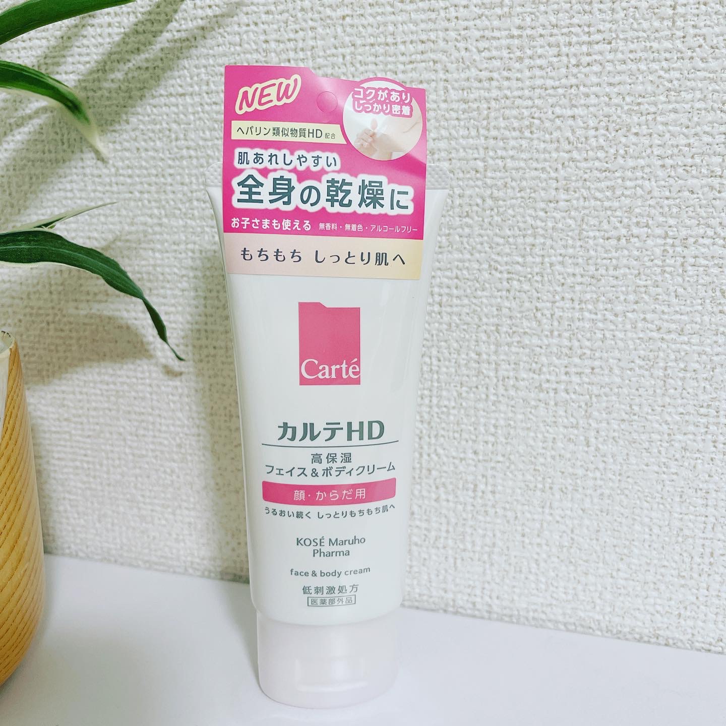 - 【全身用高保湿クリーム】 コーセーとマルホの合弁会社コーセーマルホファーマから発売された「カルテHD」。マルホから唯一供給を受けた「ヘパリン類似物質HD」を配合。 ゴワついたあれがちな肌にもピタッと密着、もっちりなめらか肌に導く全身用高保湿クリーム。 ひじ・ひざ・かかとなど気になるパーツにもピタッと密着してシールドできる「ワセリン」や「ピタッと保護膜オイル」を高配合。 それでいてのびの良いオイルとバランスよく組み合わせているから、腕やすねなどの広い範囲にもスーッと軽やかにのばせます。 フェイス&ボディローションと共通の「肌やわらかオイル」も配合。 濃厚なうるおいで肌をしっかり包み込みながらべたつかない使い心地です。