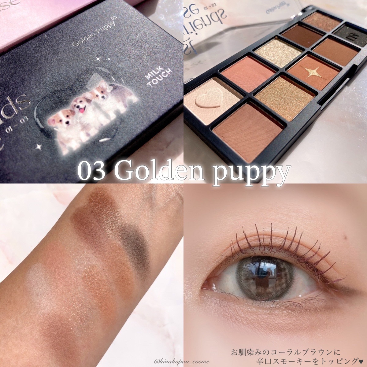 - <01 Ash Kitty> タルク、マイカ、ポリメタクリル酸メチル、ラウロイルリシン、ステアロイルオキシステアリン酸オクチルドデシル、ジメチコン、リンゴ酸ジイソステアリル、ミリスチン酸イソセチル、カプリリルグリコール、水酸化Al、トリエトキシカプリリルシラン、カプリル酸グリセリル、水添レシチン、エチルヘキシルグリセリン、トコフェロール、酸化チタン、酸化鉄、グンジョウ <02 Rosy Bunny> タルク、マイカ、ポリメタクリル酸メチル、ラウロイルリシン、ステアロイルオキシステアリン酸オクチルドデシル、ジメチコン、リンゴ酸ジイソステアリル、ミリスチン酸イソセチル、カプリリルグリコール、カプリル酸グリセリル、水酸化Al、トリエトキシカプリリルシラン、水添レシチン、エチルヘキシルグリセリン、トコフェロール、酸化チタン、酸化鉄 <03 Golden Puppy> タルク、ジメチコン、ポリメチルシルセスキオキサン、ステアリン酸Mg、合成フルオロフロゴパイト、トリ(カプリル酸/カプリン酸)グリセリル、リンゴ酸ジイソステアリル、(トリメチルペンタンジオール/アジピン酸/グリセリン)クロスポリマー、(ジメチコン/ビニルジメチコン)クロスポリマー、ミネラルオイル、(ビニルジメチコン/メチコンシルセスキオキサン)クロスポリマー、ビスジグリセリルポリアシルアジペート-2、カプリリルグリコール、カプリル酸グリセリル、エチルヘキシルグリセリン、水酸化Al、トリエトキシカプリリルシラン、酸化スズ、トコフェロール、酸化チタン、酸化鉄