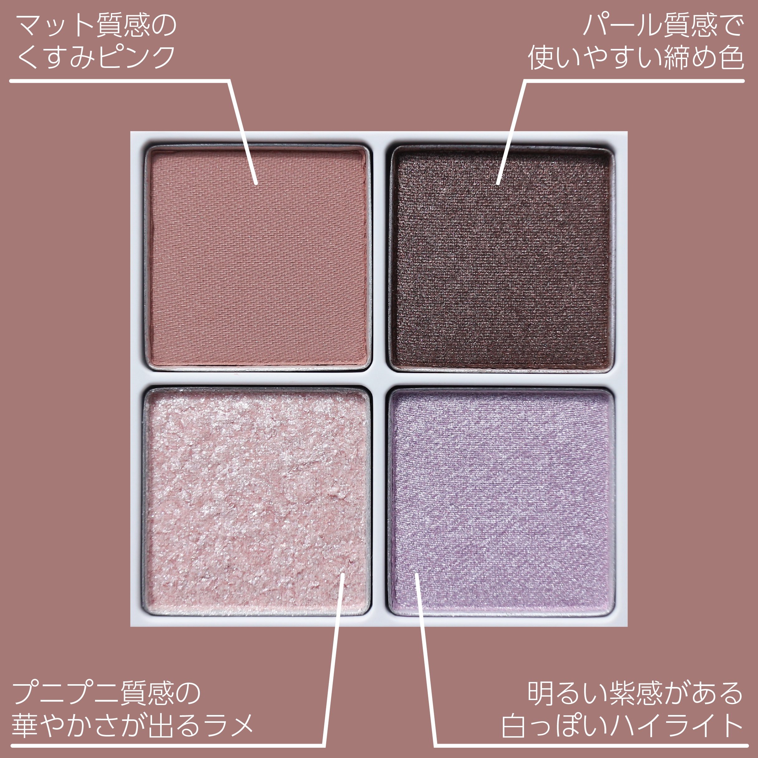 | アイシャドウパレットランキング第3位 | 粉質がふわっとなめらかになり発色もしっかりめになった! | 詳細を見る | |