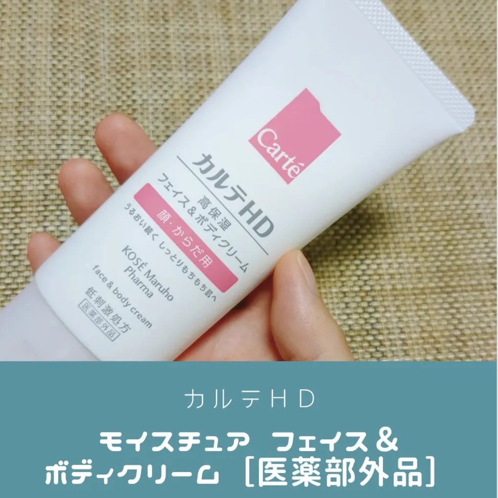 - 【全身用高保湿クリーム】 コーセーとマルホの合弁会社コーセーマルホファーマから発売された「カルテHD」。マルホから唯一供給を受けた「ヘパリン類似物質HD」を配合。 ゴワついたあれがちな肌にもピタッと密着、もっちりなめらか肌に導く全身用高保湿クリーム。 ひじ・ひざ・かかとなど気になるパーツにもピタッと密着してシールドできる「ワセリン」や「ピタッと保護膜オイル」を高配合。 それでいてのびの良いオイルとバランスよく組み合わせているから、腕やすねなどの広い範囲にもスーッと軽やかにのばせます。 フェイス&ボディローションと共通の「肌やわらかオイル」も配合。 濃厚なうるおいで肌をしっかり包み込みながらべたつかない使い心地です。