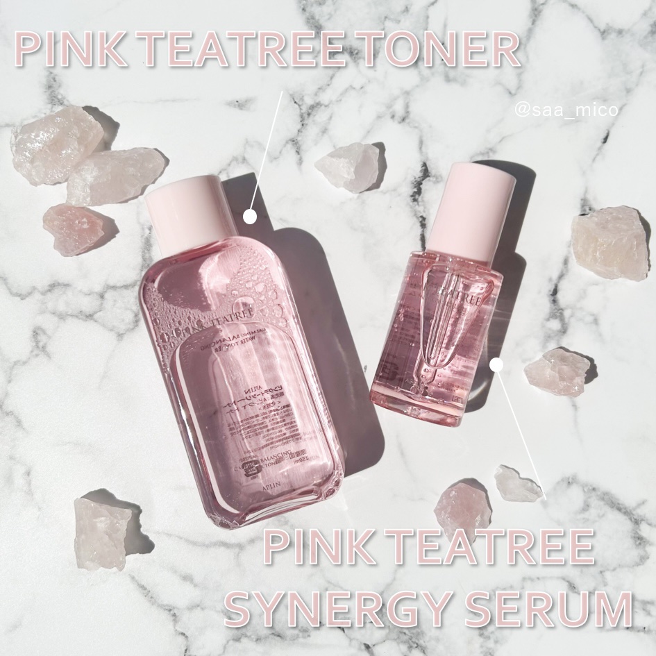 ティーツリーや、シカエキスを配合でニキビ、肌荒れ悩みをケアしてくれるトナー🩷 ピンク色は自然成分「ビタミンB12」本来の色だそう✨ サラサラテクスチャーで、さっぱりした使い心地✨