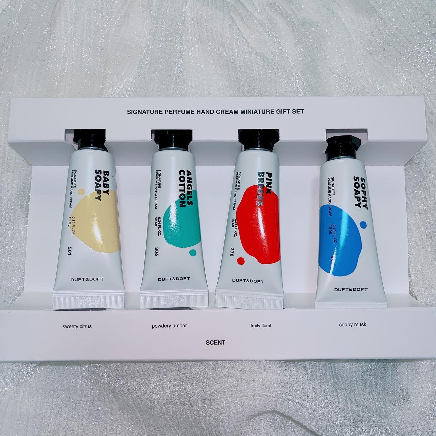 DUFT&DOFT(ダフト&ドフト)シグネチャーパフュームハンドクリーム 香りは4種類 好きな香りを見つけてみてね 韓国で1000万個以上売り上げている 国民的ハンドクリームなんだって まるで香水のようにふわっと香るから気分転換にピッタリです