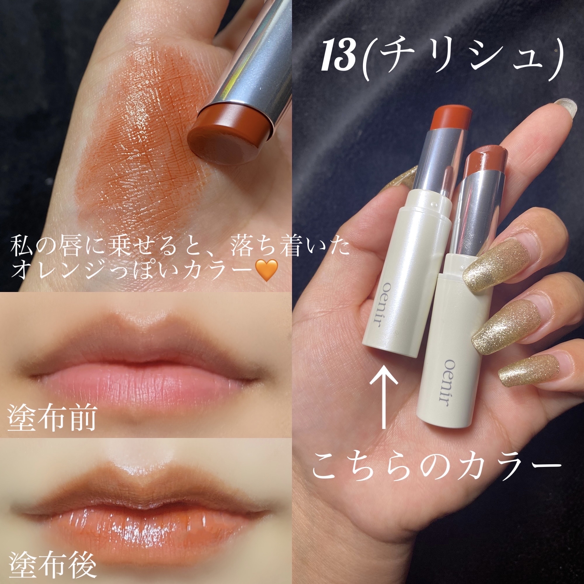 桜色のひと時なんて、ほんっっと手に入らない!!って事で話題になってたよね😭 ばぶみたっぷり、話題のうさぎ舌カラー🐰🩵 グリーンパールを纏ってるから、深みも出て学生さん〜大人までみんなが付けやすいピンク💋 柔らかさに、深みもIN…✨ イエベもブルベも使いやすいピンク、絶対チェックしてほしい…😭!!!! 真夜中の褒美は、深い赤みブラウン+グリーンパールで、妖艶な色気唇を演出🪄 ただの赤ではなく、ブラウンが混ざり合う事で大人の赤って感じの発色✨ 濃いメイクにベタ塗りするのが個人的に1番のお気に入り…💋(フチはぼかしてね🙆♀️) ティッシュオフして軽めに使うのも可愛いけどけ🥰 オフしても、ラメはきらんきらん残る🤭 (これだけラメがしっかり付くのすごい💐) 2位の秘めた炎はミルクティーを注いだような上品ミルクティーブラウン🪄 このカラーも大人っぽくて、普段使いしやすそう🥺