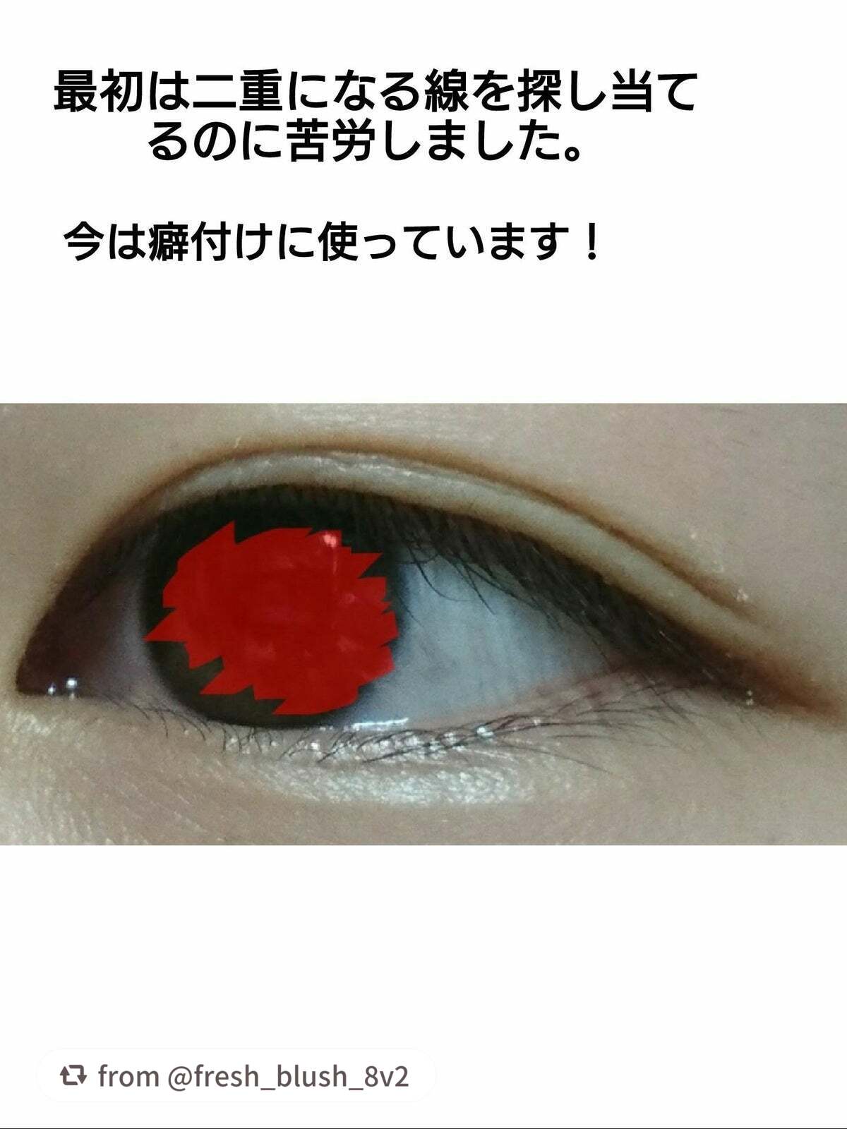 | 引っ張って二重瞼につけて端をハサミで切る!しっかりまぶたにくっつくし、その上から化粧しても粘着落ちたりしなかったから良き!! | 詳細を見る | ||
