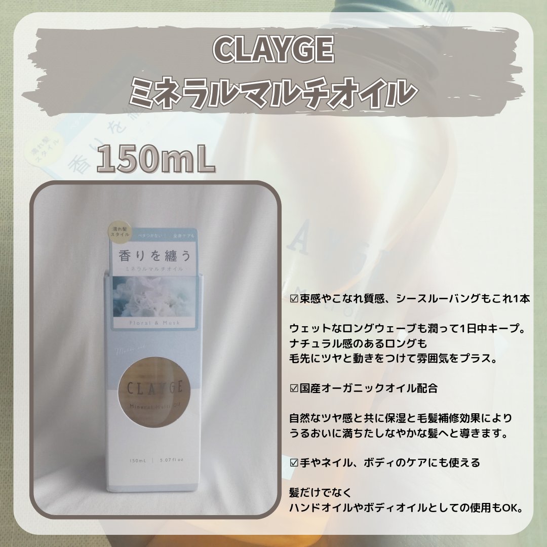 CLAYGE ミネラルマルチオイル フローラル&ムスク | 1,650円 |