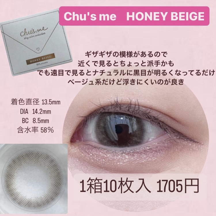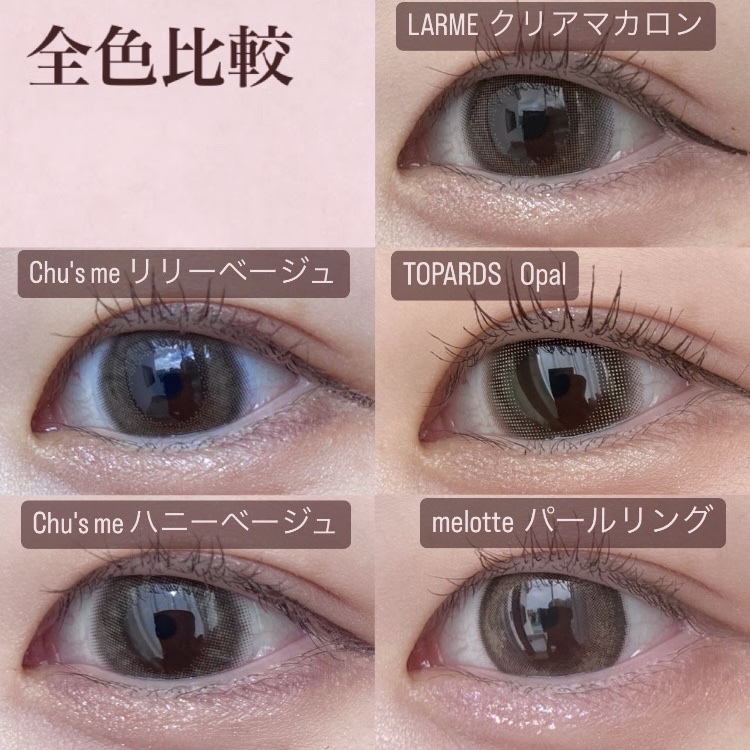 ベージュ系は少し少ないですが参考になると嬉しいです! お気に入りはChu's meのリリーベージュです♡ melotteはカラコンが悪いというより、あかりんの目が大きいから似合うのであって、私がつけると宇宙人になってしまう感じがしました🥲