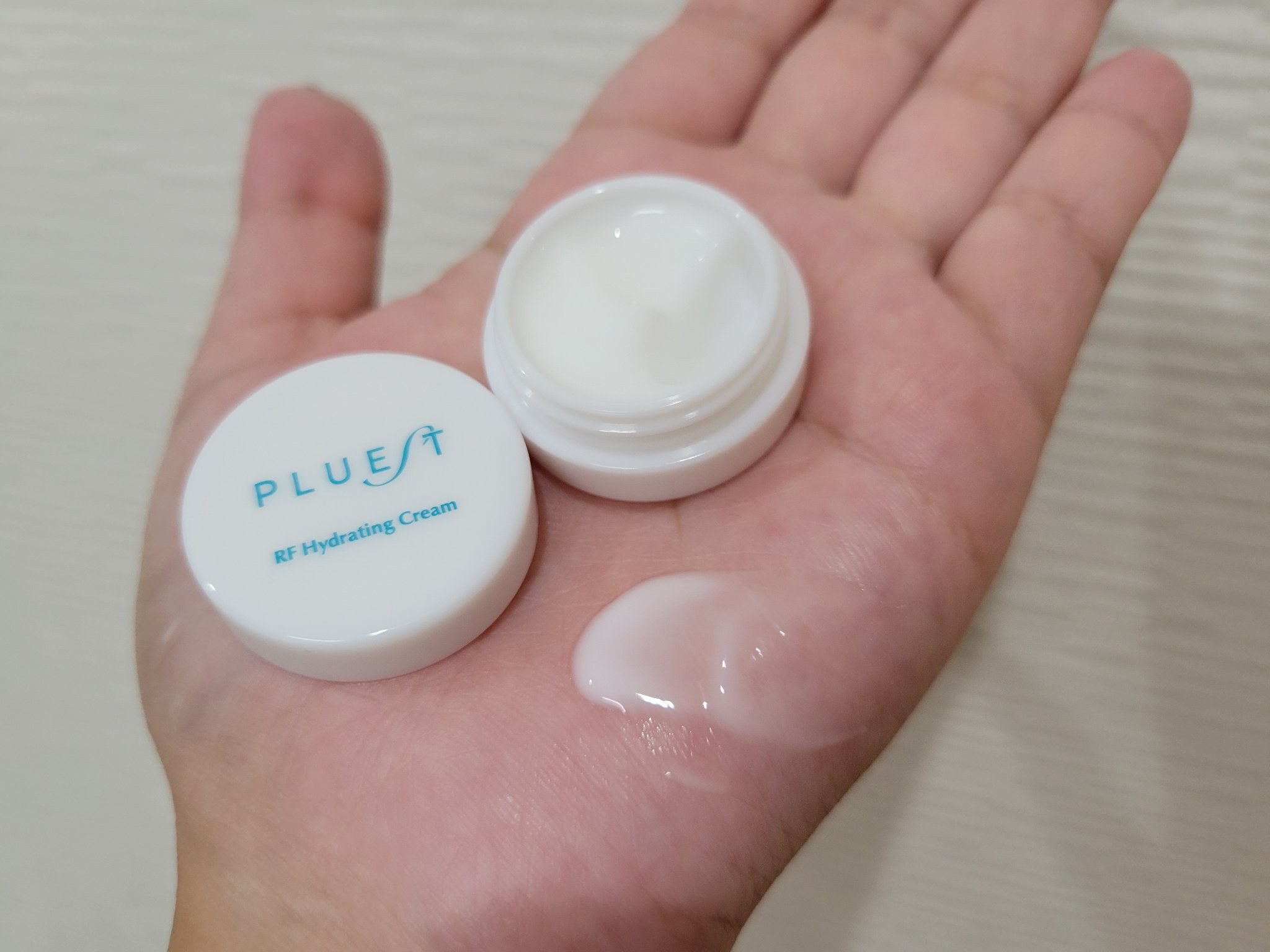 化粧水は甘めの香りで、少しとろみがあり肌に馴染ませやすいです。 美容液もとろみがあり、伸びが良く、少量でも顔全体にしっかり塗ることができます。 クリームは柔らかいテクスチャで、しっかり保湿し、モチッとした肌になりました。