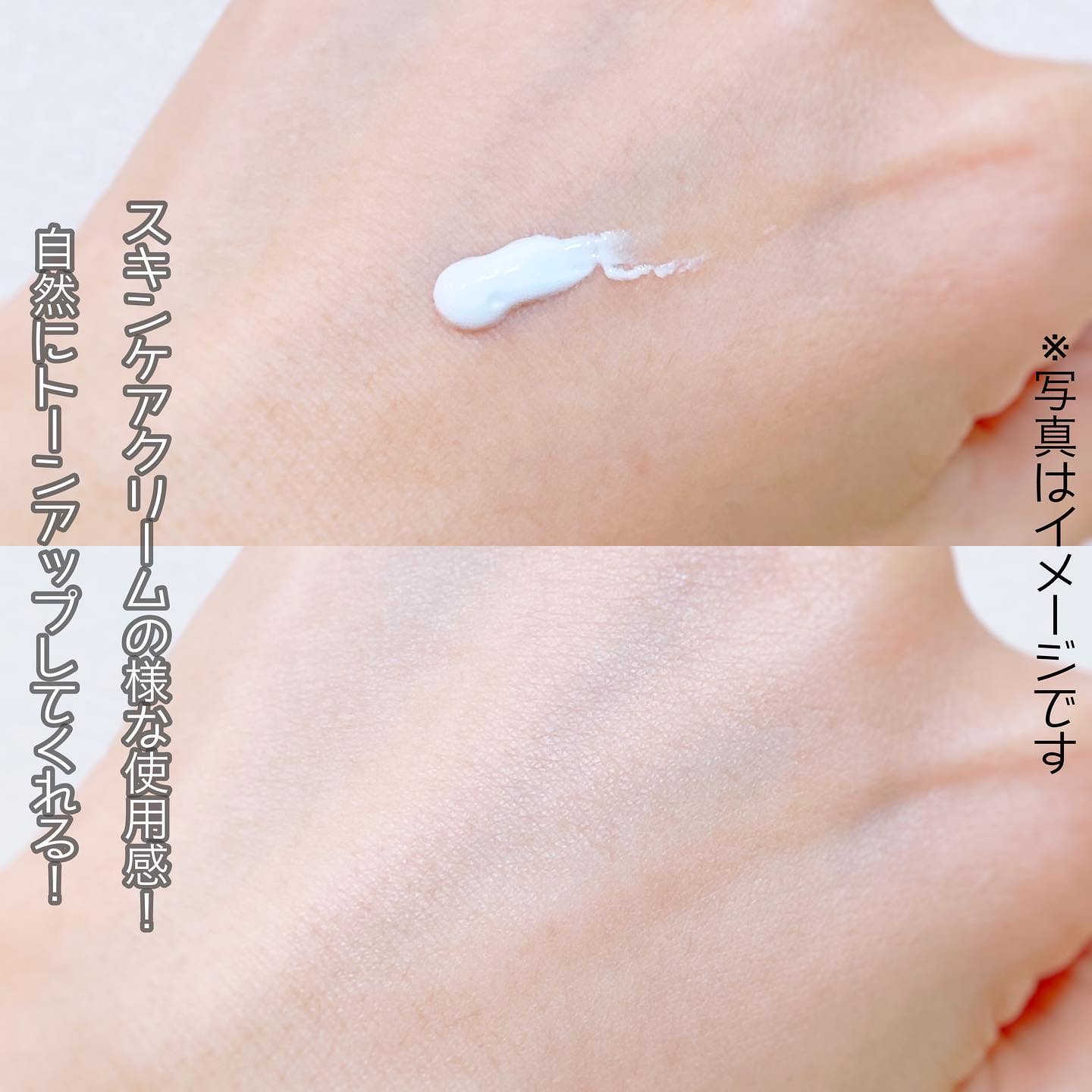 73%水分エッセンス処方のトーンアップクリーム💧🌟 スキンケアクリームみたいな使用感で伸びはいいし、ムラになりにくく白浮もほぼしない🤍 くすんだ肌をパッと明るく見せてくれるし乾燥も防いでくれるよ(*´ω`*) 下地に仕込んでもよかった🙆