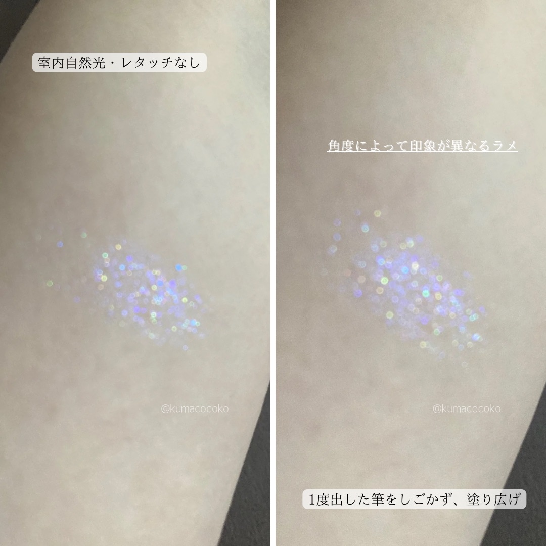 | リキッドアイシャドウランキング第2位 | 中に入っている偏光オーロララメの大きさがまた絶妙で、そのまま塗って使っても良いんだけど瞼にラメを乗せる感じで使ってもキラキラで可愛いよ | 詳細を見る | |