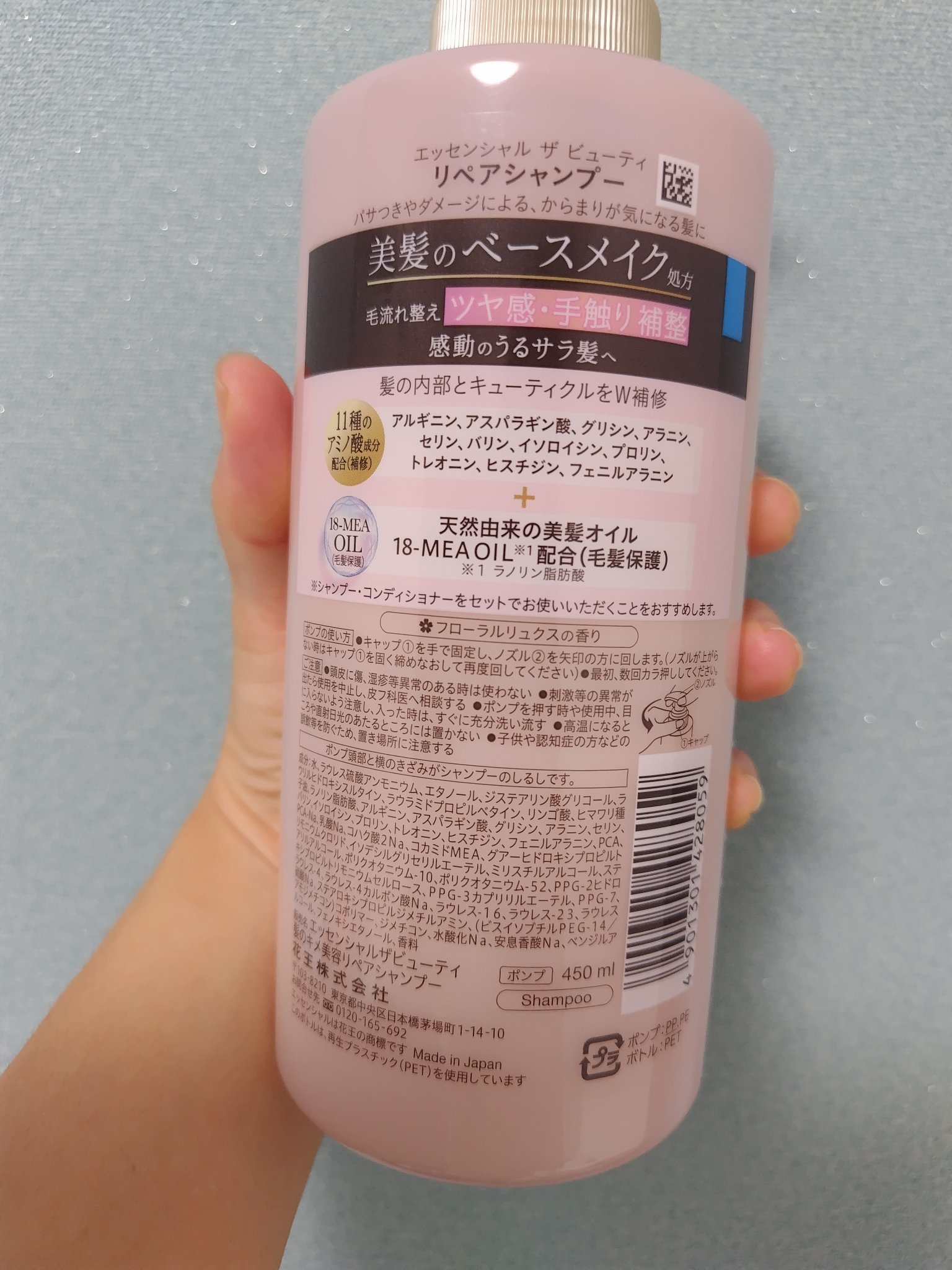 - パサつきやダメージによる、からまりが気になる髪に、 美髪のベースメイク処方のリペアシャンプー&コンディショナー。 毛流れを整え、ツヤ感や手触りを補整し、感動のうるサラ髪へ。 毛流れが整うと、いいことがたくさん♪ ✓毛先までするするの指通り ✓ツヤ感 ✓カラーの映え感UP ✓寝ぐせつきにくい ✓ドライヤーで乾かしやすい ✓朝、手ぐしでまとまる ✓アイロンの形づきUP ✓毛先までうるおい感UP こだわりの美髪成分配合で、髪内部とキューティクルをW補修。 ✓髪に含まれる11種のアミノ酸成分配合(補修:アルギニン、アスパラギン酸、グリシン、アラニン、セリン、バリン、イソロイシン、プロリン、トレオニン、ヒスチジン、フェニルアラニン) ✓天然由来の美髪オイル[18-MEA OIL*(毛髪保護:ラノリン脂肪酸)]配合。 *髪に0.1%未満しかなく、ツヤめきや指通りの良さに必須の成分です。 ✿フローラルリュクスの香り