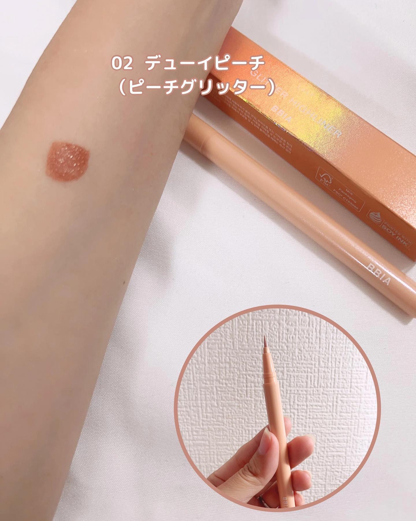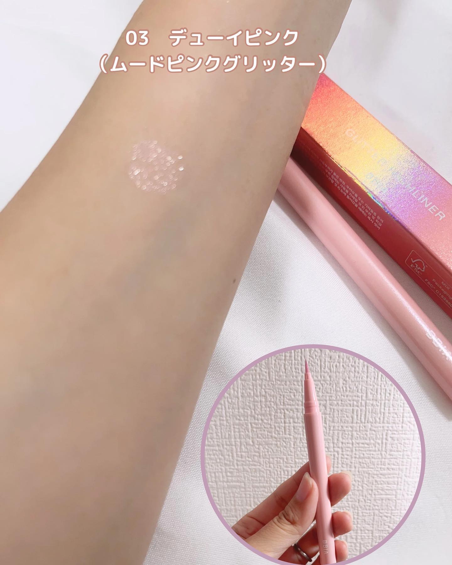 - 1.柔らかく初心者も簡単に使用できるグリッターライナー。 2.ハイライターからグリッターライナーまでお好きなところに合わせて様々な演出可能。 3.速やかなフィックシング、速やかに密着され、崩れることなくロングラスティング効果。