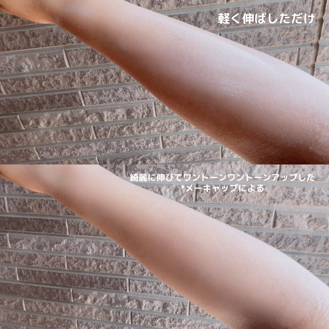 今すぐ色白肌*に見せたい人向き🤍 美白は日々の積み重ねだけどとりあえず白く見せたい時や顔と首のトーン違いが悩みの時に使ったらめちゃよかったよ〜!! テクスチャーはほぼ水おしろい! シャカシャカ振るところもつけた時の伸びの良さもつけてないと錯覚する軽い着け心地も水おしろいそのまんま🍼✨ サラサラで速乾性が高くて衣類への色移りもしにくい🫶🏻 ウォータープルーフだけど油分には弱いから落とす時オイル系使えば擦らなくてもスルッと落ちるよ!