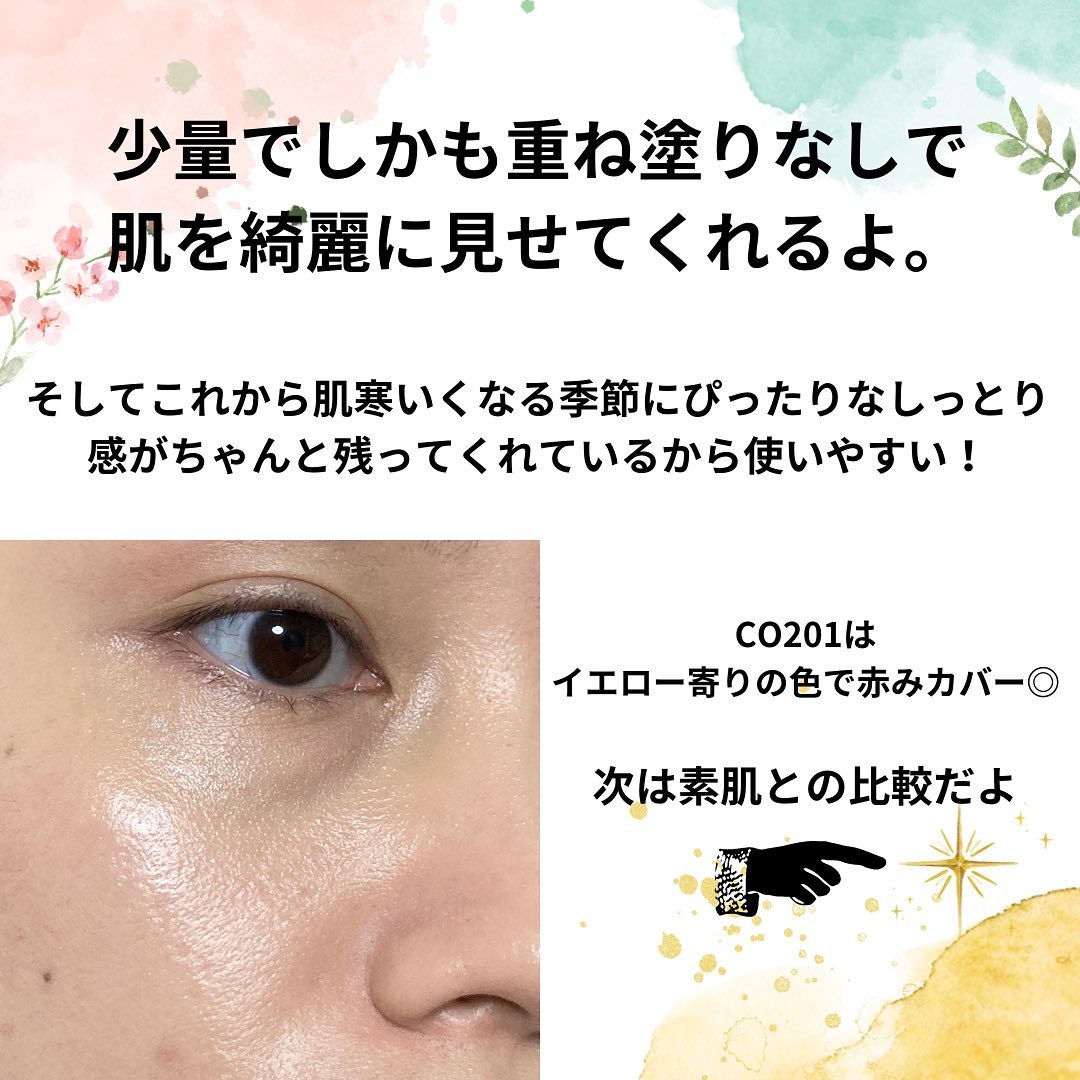 角が立つくらいこっくりしたテクスチャーですが、かなり滑らかな使用感です。 ハイカバーなのに、重すぎない使用感でお気に入り!! 重ねて使えばコンシーラー並みのカバー感で一つあればファンデーションとコンシーラーを賄えて◎