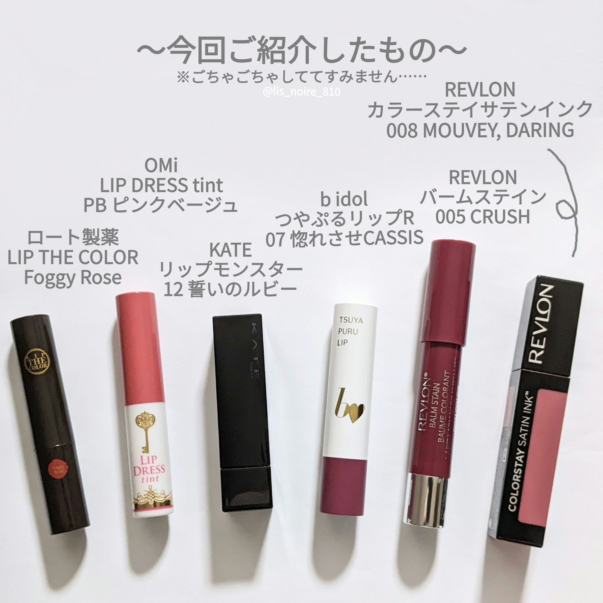 ほんのり紫・モーヴっぽさのあるシアーなブラウン。 主役リップからアイメイクが主役の時の引き算リップとして かなり良いです◎ 軽い飲食やティッシュオフしても残ります!