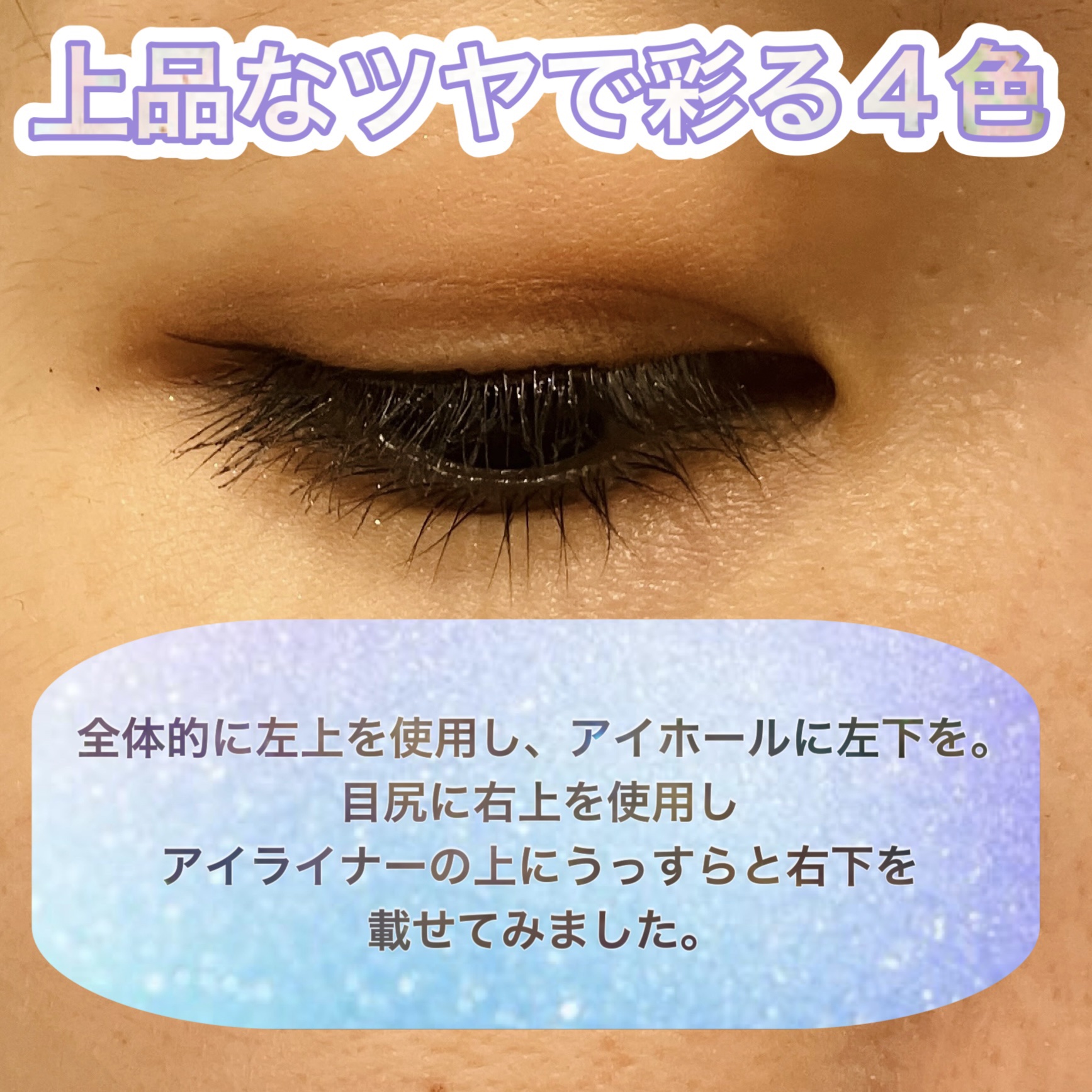 - 敏感肌のまぶたをケアしながら、美しく彩る。ミネラルの色と光を重ねて、メイクするたび自分らしく。 着眼点は「大人のくすみ※1やすい、まぶた」。 敏感になってしまった肌に対し、8種の美容成分※2がうるおいを与えながら丁寧にケアします。 なりたい表情をメイクで叶えながら、健やかな透明感※3のあるまぶたへ。 大人の目もとを上品なツヤと発色で彩る4色アイカラーは、まぶたに吸い付くような質感で、澄んだ眼差しを演出します。 心のままに色を重ねて、なりたい自分を描いて。 ※1 乾燥によるもの ※2 保湿成分:ヒアルロン酸Na、ポリクオタニウム-61、シロキクラゲ多糖体、アシタバ葉/茎エキス、クダモノトケイソウ果実エキス、モモ花エキス 整肌成分:グリチルレチン酸ステアリル、グリチルリチン酸2K ※3 メイクアップ効果による