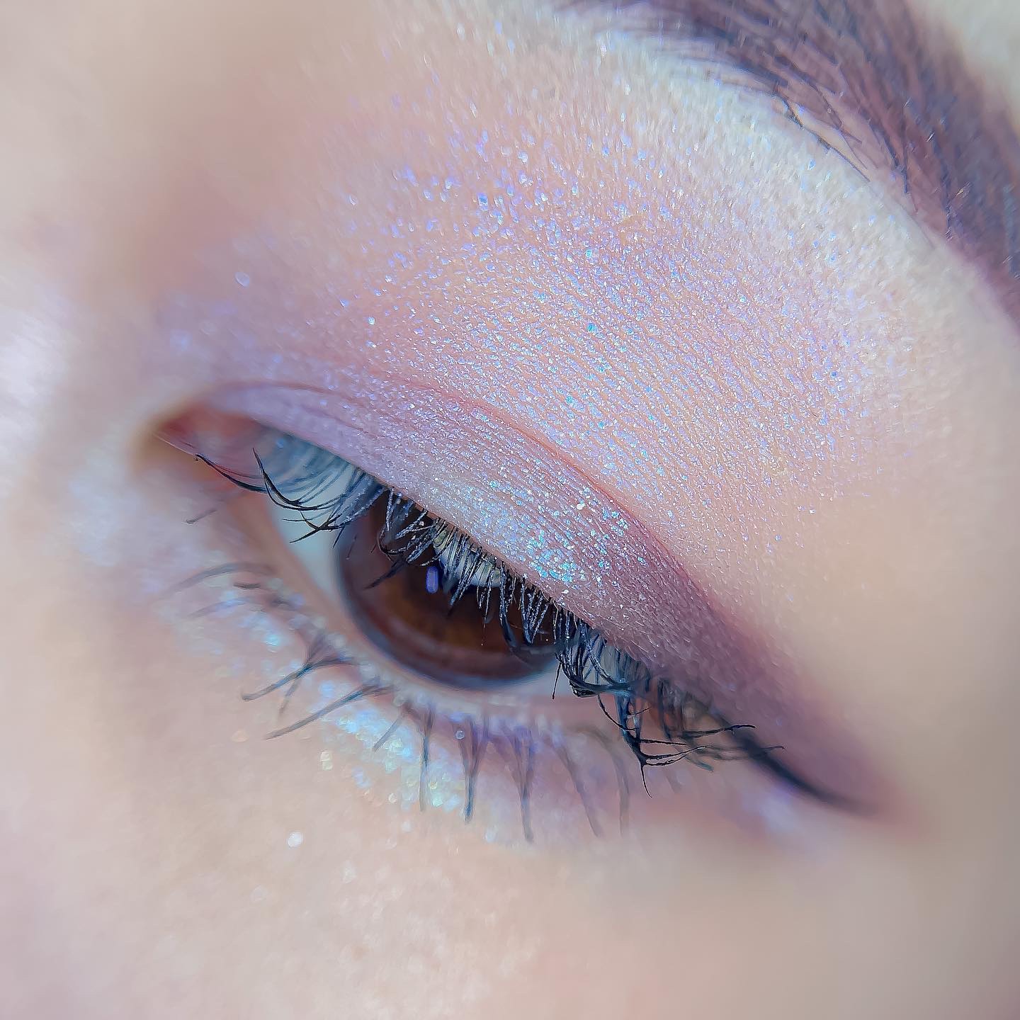 ピンクにグレージュも良いですね👌💗 今日は可愛らしい感じにしてみました💕 上下瞼黒目〜目頭側にラメを塗ってキラキラさせております🤩 目尻はマットのピンクを濃いめに重ねて💗 グレージュのアイライナーと相性◎
