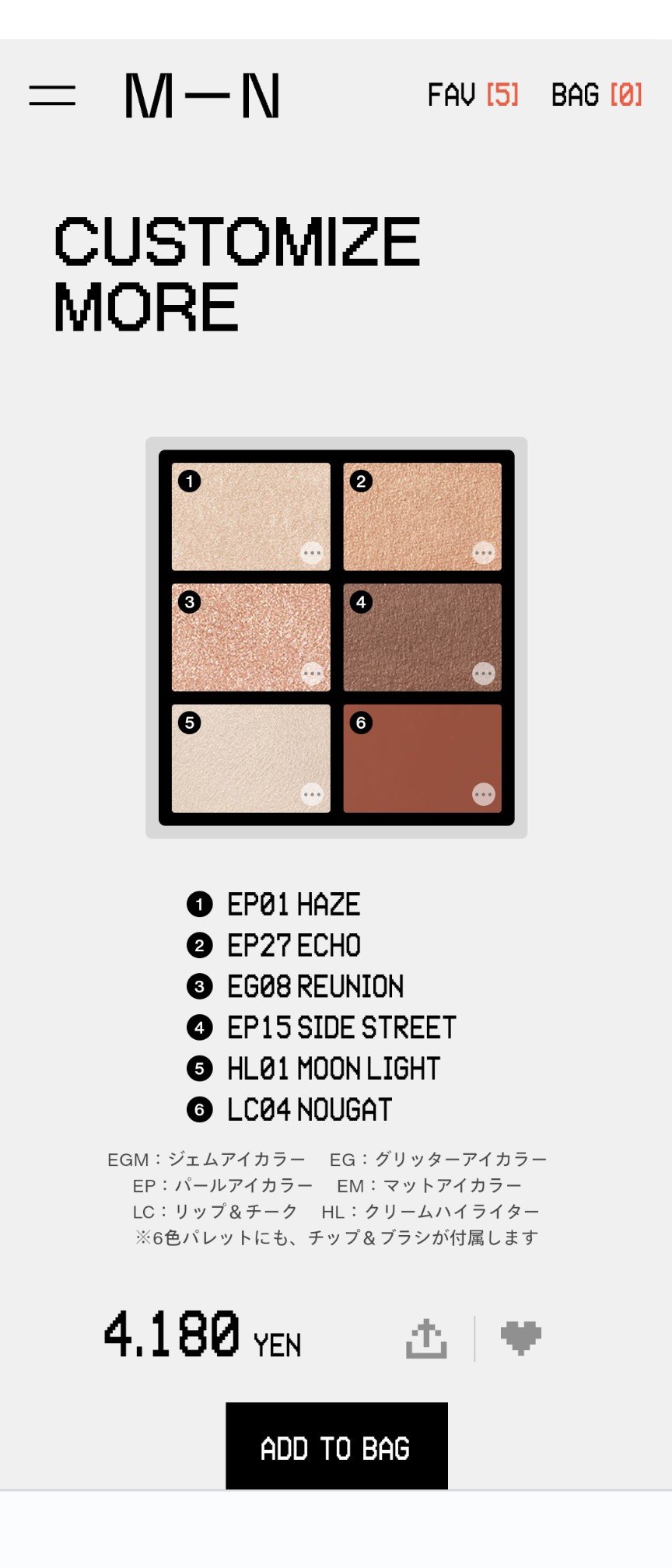 商品詳細情報MN MY MIXED PALETTE 6色カスタムパレット