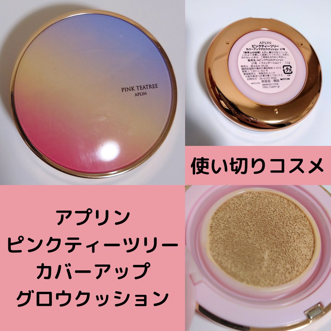 APLIN ピンクティーツリーカバークッション 21号ライトベージュ 2,490円(税込) 少量でよく伸びてハイカバー! 赤みやくすみをしっかりカバ一できるのに、厚塗り感のないなめらかな仕上がり♡ ハイカバーなのにナチュラルなツヤ感とサラッとしつつ、乾燥崩れしにくい仕上がりに感動します!!