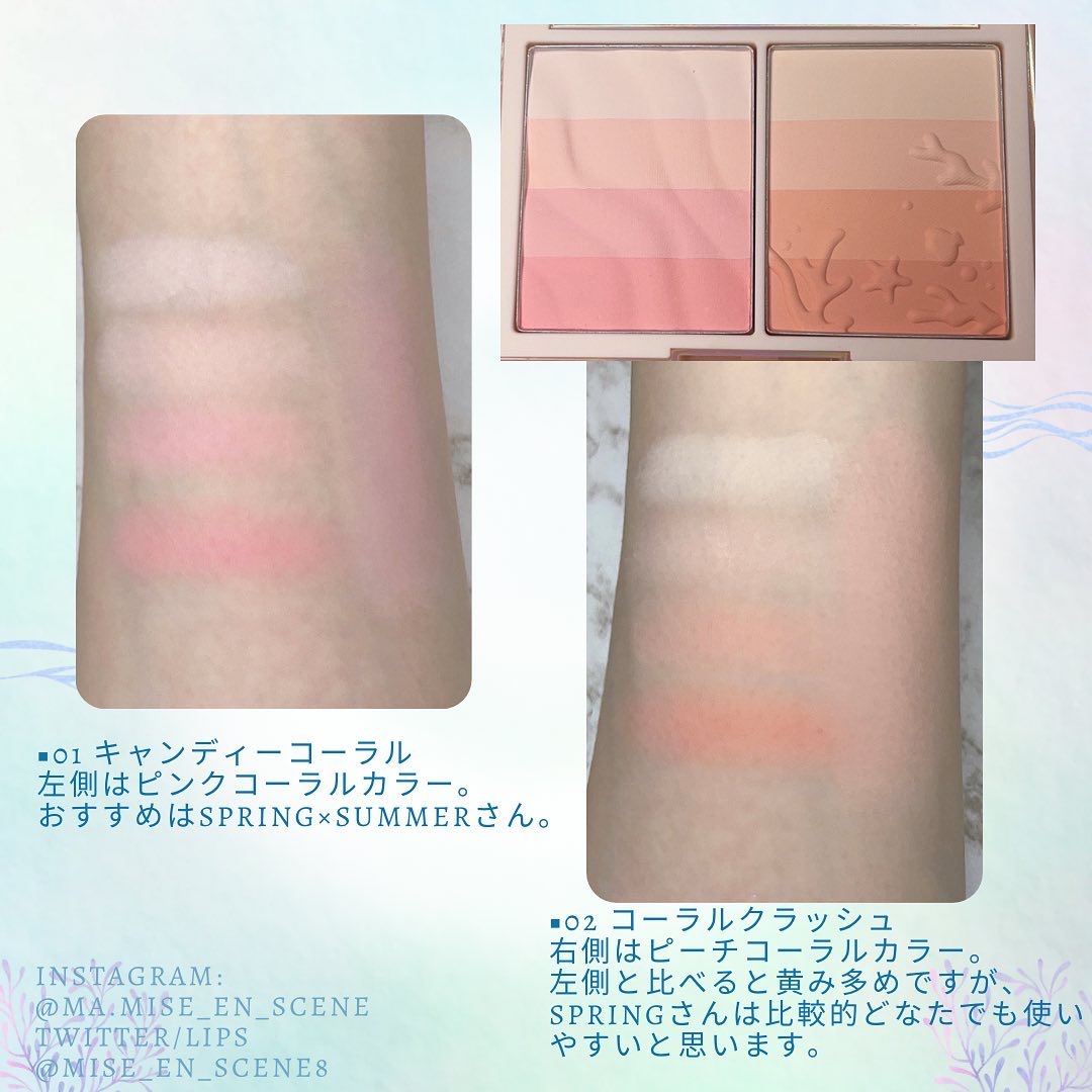 水分量が丁度よくむらになりにくいのと、 カラー展開が豊富でメイクに合わせて使い分けしやすいのが嬉しい! 今回は私が直感で可愛い!!と思った8色をご紹介します。 カラーが多いので、2日に分けてご紹介します✨️