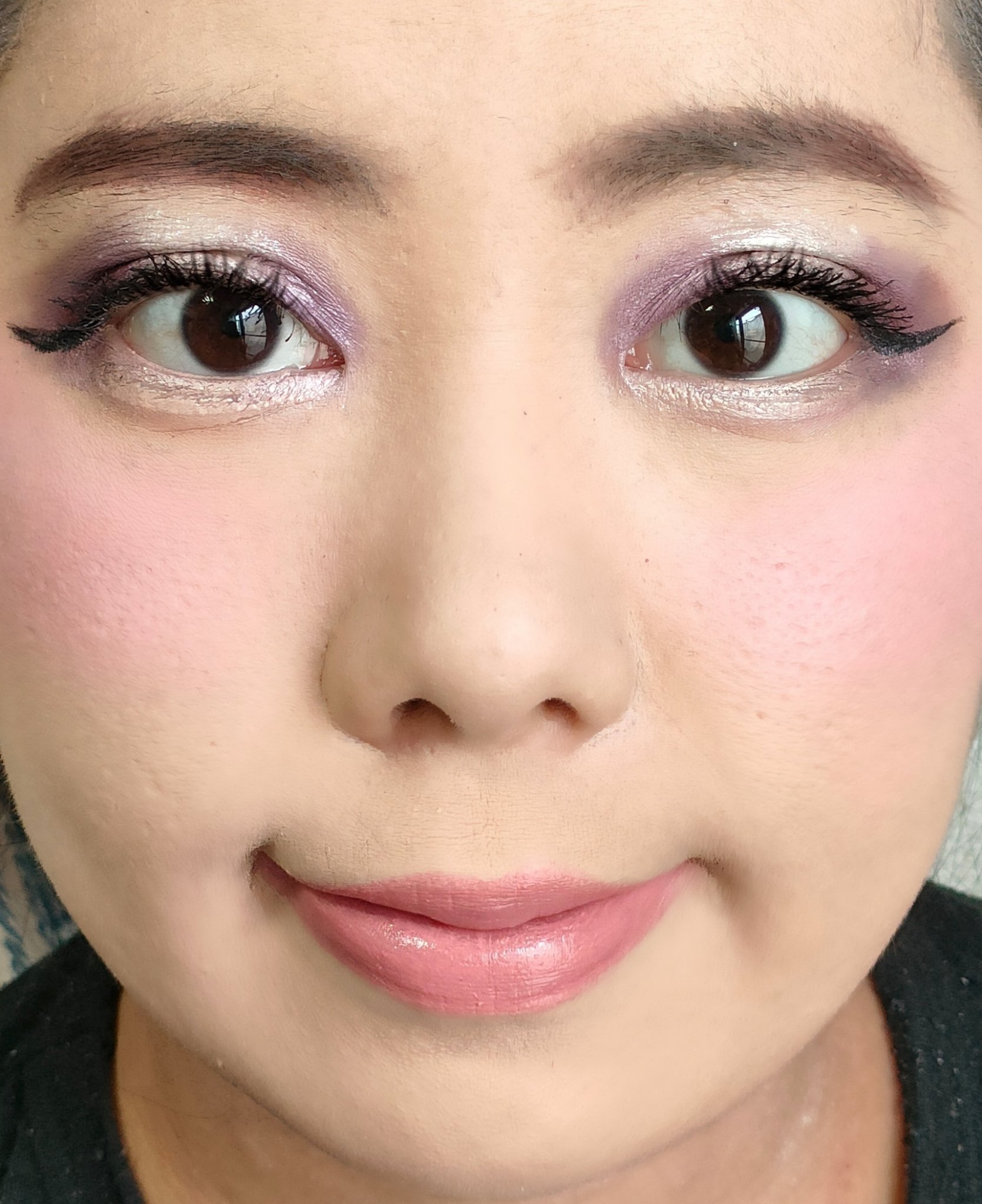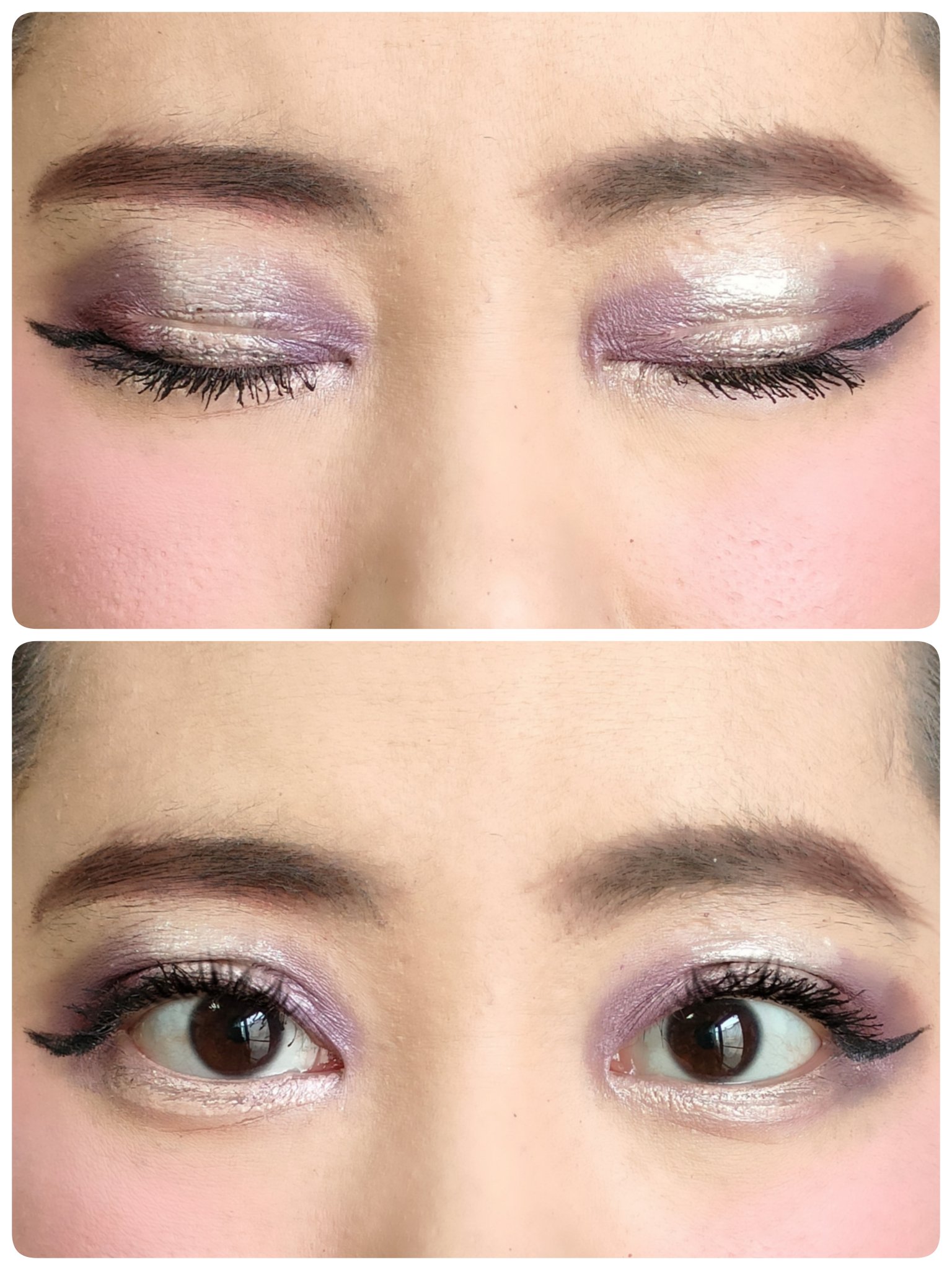 アイシャドウパレットは、URGLAM UR GLAMBLOOMING EYE COLOR PALETTE 02を、使用しました。 マスカラは、MAYBELLINE NEW YORK コロッサルボリュームエクスプレスを、まつ毛全体にまんべんなく塗ります。 リップは、wet 'n' wild MegaLast Lip Colorを、唇全体にまんべんなく塗ります。
