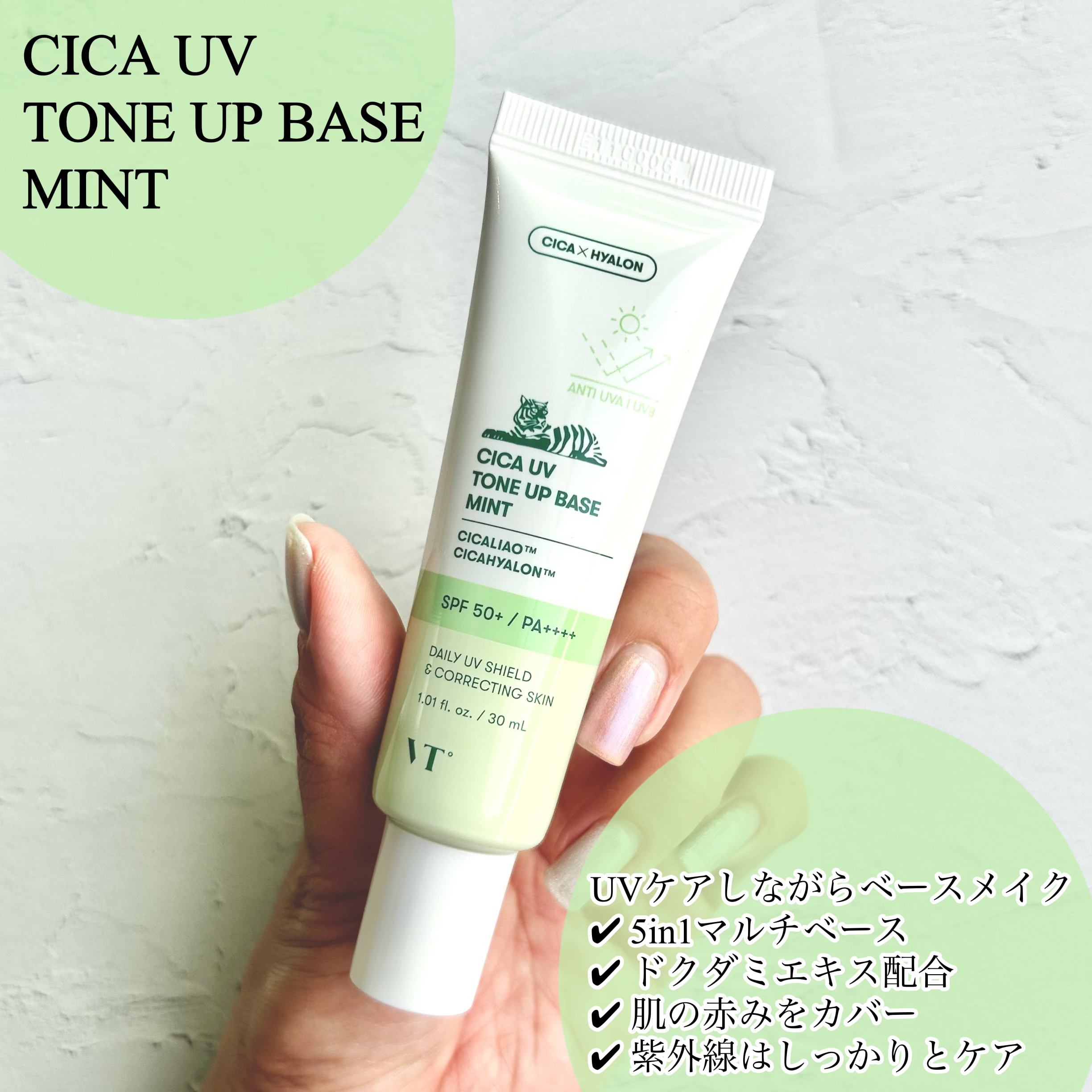 VTCICAUVトーンアップベース ミント職場でいただきました!グリーンのトーンアップはあんまり使う機会がなかったけど、みずみずしく広げやすいのでグリーンが主張しなくて良かったです✨#VT#ブイティー#CICA#トーンアップ#トーンアップベー...