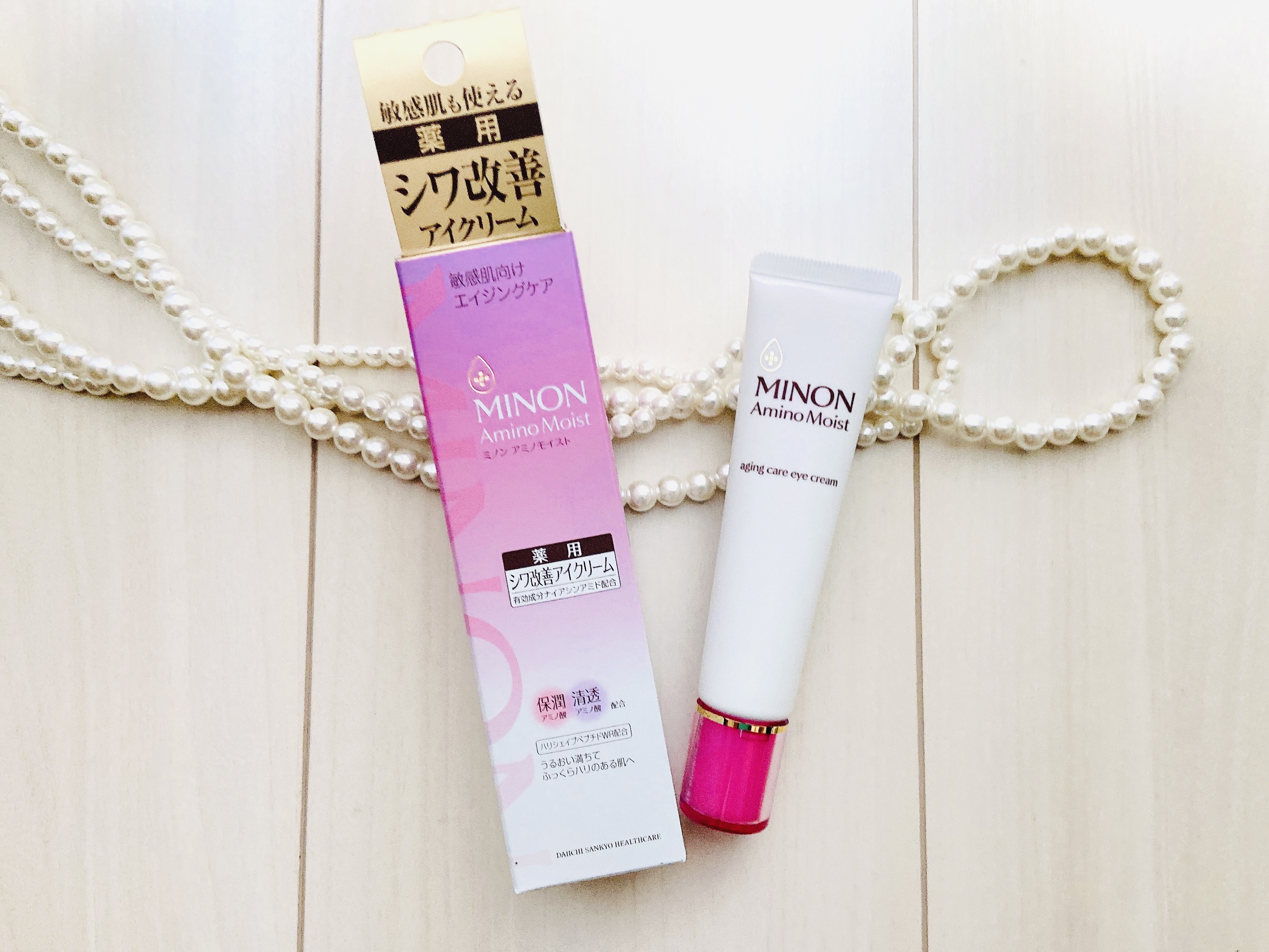 - 【敏感肌も使える薬用シワ改善アイクリーム】 ダブルの有効成分配合。気になるシワを改善し、しみ・そばかす*1、肌あれを防ぎます。 ●ナイアシンアミド:シワ改善&しみ予防 ●グリチルリチン酸2K:肌あれ予防 ハリを与えつや肌に導く「ハリシェイプペプチドWR*2」配合。 使い続けるたび、シワを改善し、うるおってハリのある明るい印象の目元へ。 エイジングケア:年齢に応じたお手入れケア *1メラニンの生成を抑え、しみ・そばかすを防ぐ *2ヤシ油脂肪酸水解コラーゲンK (販売名:ミノンアミノモイストAE)【医薬部外品】