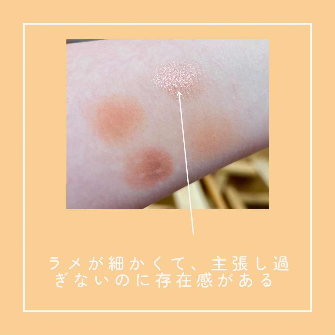 - 透け感マット×濃厚ブラウンの4色アイシャドウ。 しっかり目元を引き締めるビターなブラウンカラー。 透け感のあるブラウンを重ねて、自然な陰影のある目元へ。 ふんわり柔らかなパウダーなので、スルスル伸びてまぶたにピタッと密着。 保湿成分(スクワラン、ホホバ種子油)配合。