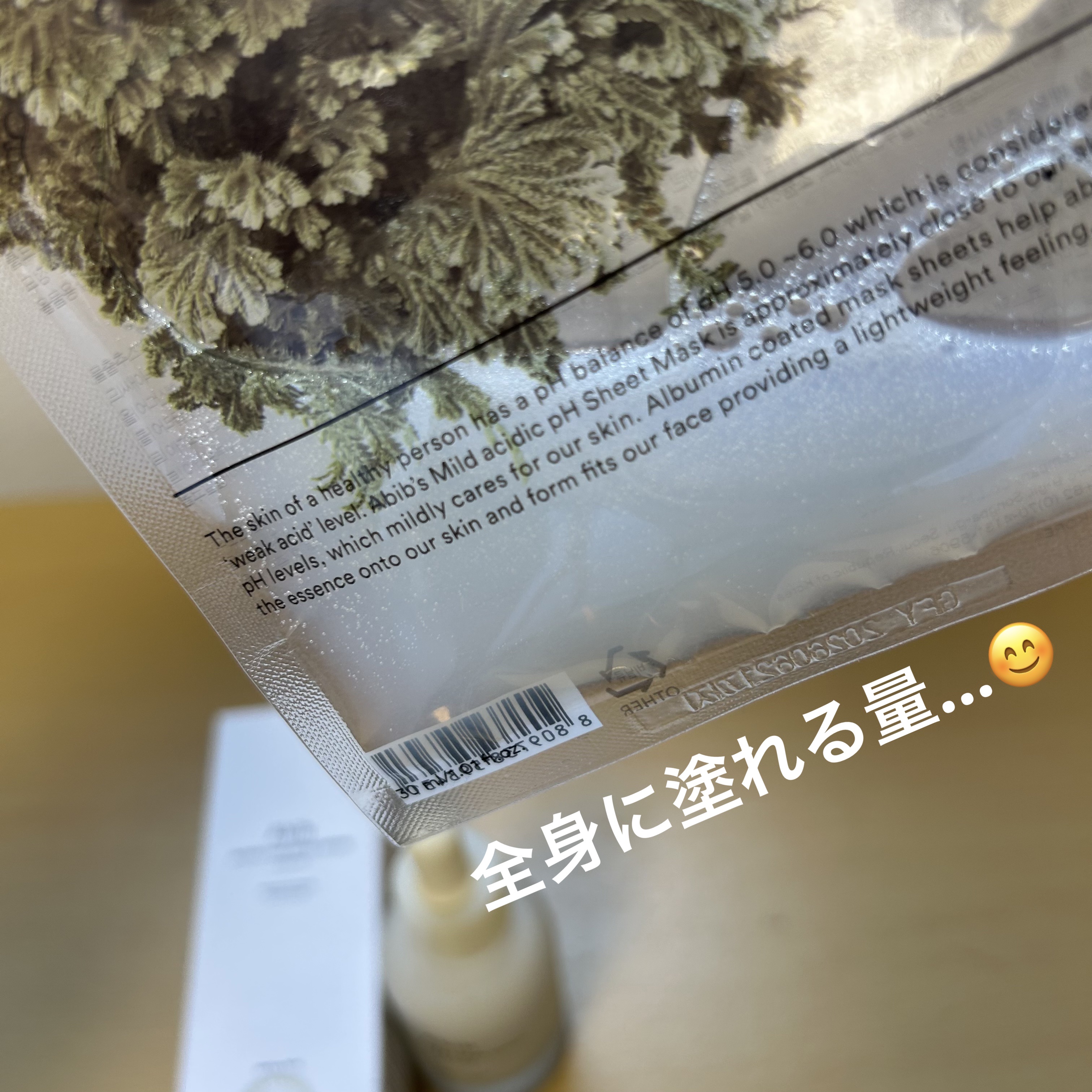 Abib弱酸性PHシートマスク復活草フィット初めて使ったパック保湿系のパックで使い心地が良かった肌荒れしている肌に使っても刺激がなく使えた1枚は高いけど特に乾燥が気になるときに特別ケアとして使っています。このパックは、シリーズがたくさんある...