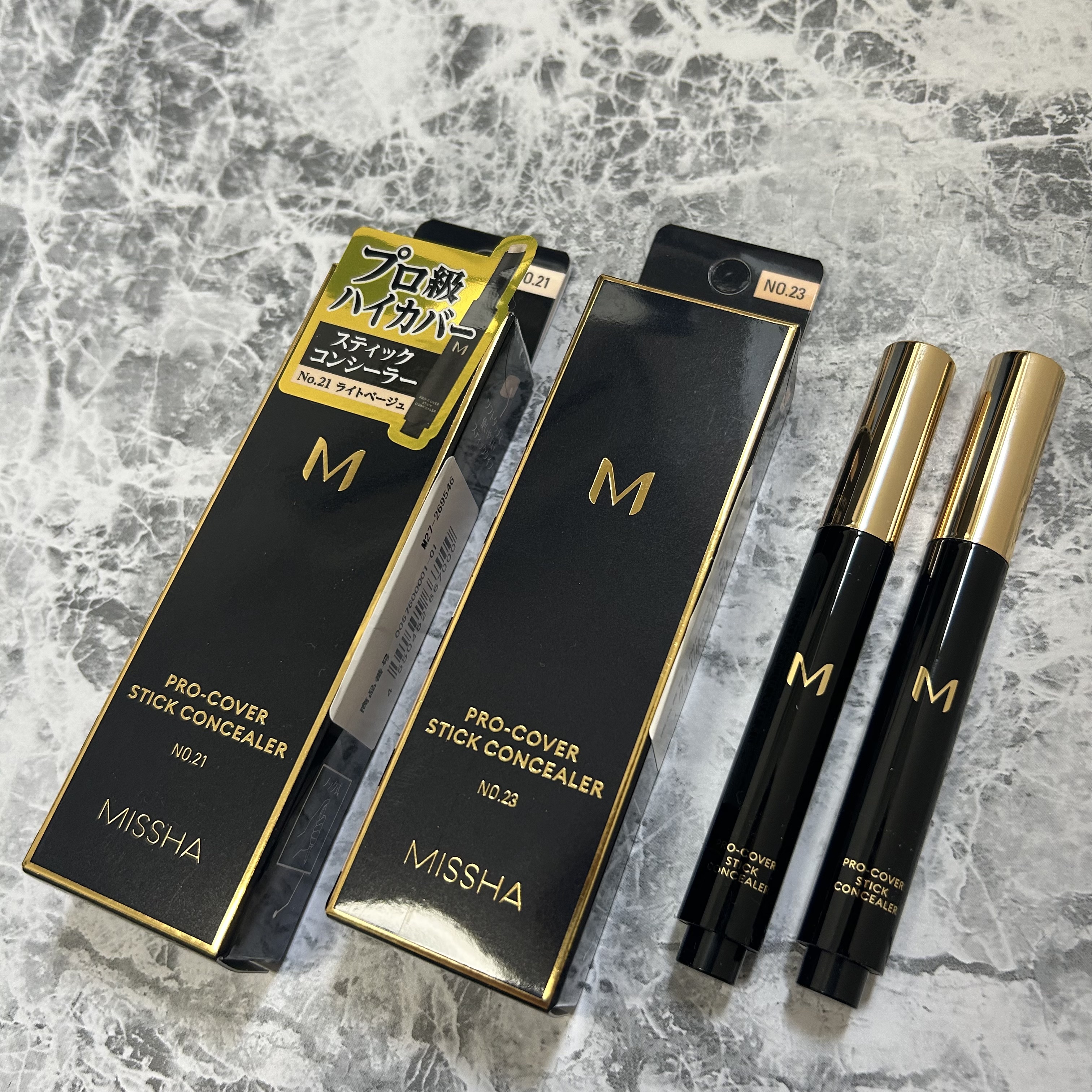 【使った商品】MISSHAMプロカバースティックコンシーラー21 ライトベージュ【商品の特徴】形状の異なるパウダーとポリマーを組み合わせた独自処方で、少量でもハイカバー。軽くこすると最も軽い板状パウダーが浮き出て肌をコーティングし、表面をサラ...