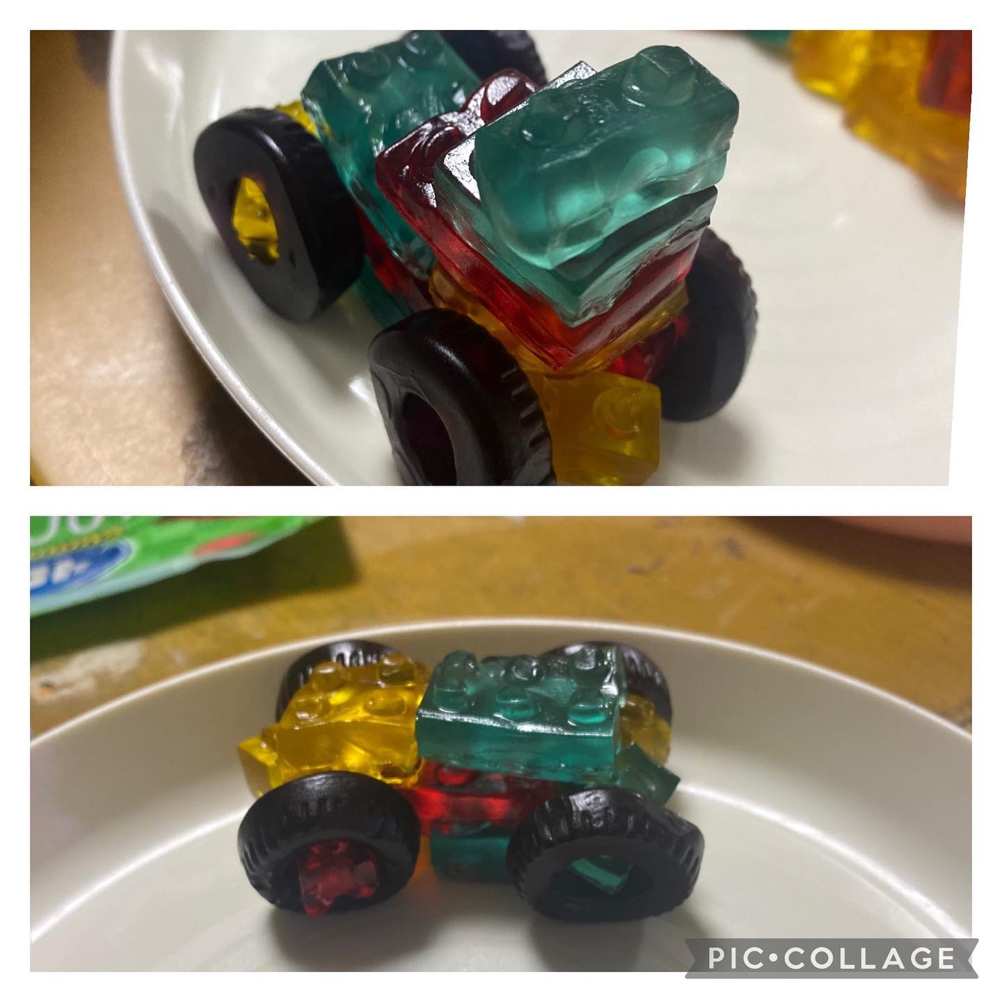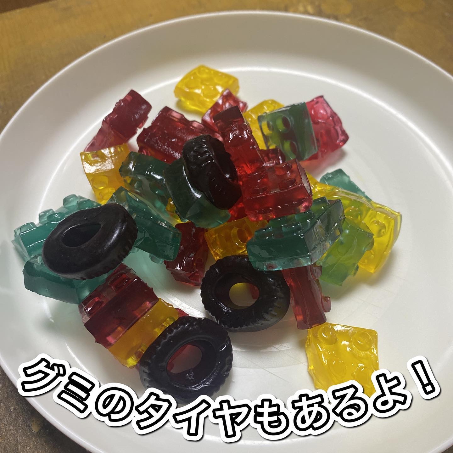 4Dグミって何?って思う方もいると思うんですが、 4D=3D(3次元)➕Delicious(美味しい) ブロックの形をしていてこんなグミがあるんだ😳と初めて実は知りました💦 ブロックだけのパックと、 乗り物が作れるタイヤ付きのパックがあるのでブロック好きには楽しいおやつですよね❣️ 乗り物パックはタイヤ付きというのが息子にはかなり嬉しいポイントでどうしたら乗り物になるかな? とグミを見ながら左右対称にするには? と考えながら作っていました✨