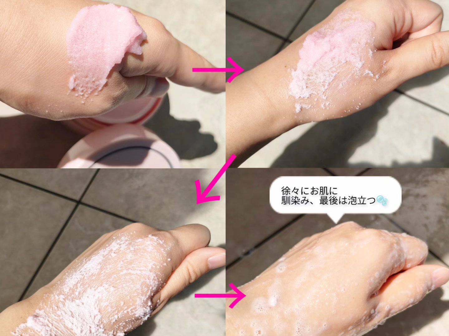 AGARISMQ+Meスイートボムタラソスクラブsweetのヒッププロジェクトから誕生した第一弾プロデュース商品!パッケージもピンク色で可愛いらしいですが、スクラブもピンク色で使うのが楽しみになります。パッケージを開けると甘い香りがバスルーム...