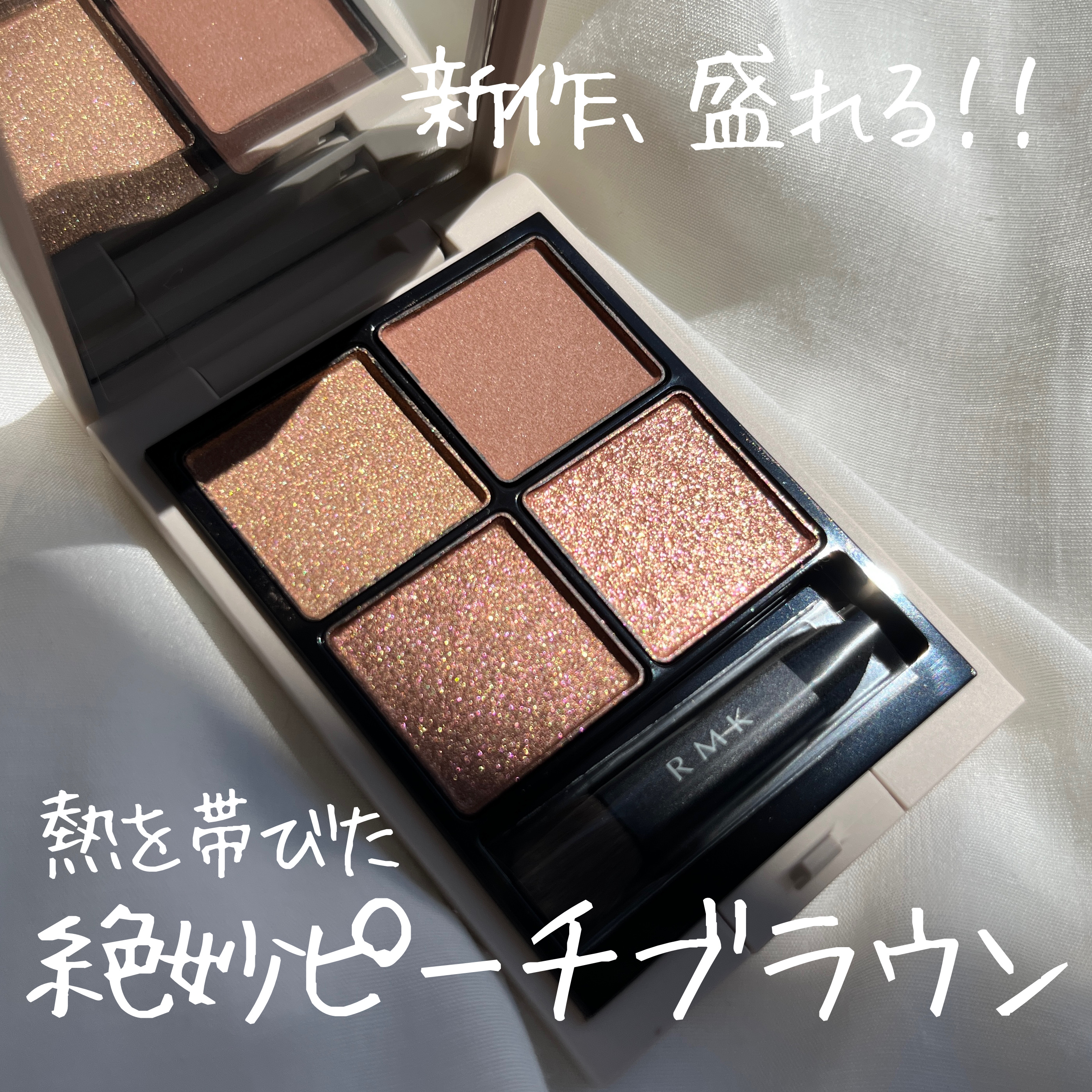 - 微差までこだわりぬいた色と質感のニューエッセンシャルパレット。 重ねるごとに深みを増し、 さまざまな質感やきらめきが混ざりあってつくり出すのは まるでワンカラーのように美しい、 やわらかくモダンなスモーキーアイ。 RMK新質感のライトシャイニーを含む、シャイニー、シマー、 パールシマー、マットのきらめきやツヤを放つ質感と色は、 それぞれが主役級でありながら4色すべてを重ねても濁らず、 奥ゆきを生みながらもダークにならない設計を追求しました。 白膜感や厚みの出にくい処方だから、 肌の色をいかしてクリアに発色。 透明感とツヤのあるパウダーが、 まぶたにやわらかくのび広がり、しっとりと肌と一体化。 肌になじみながらも主張する奥ゆきと透明感が目もとを彩り、 まとう人のパーソナリティをよりいっそう引き立てます。