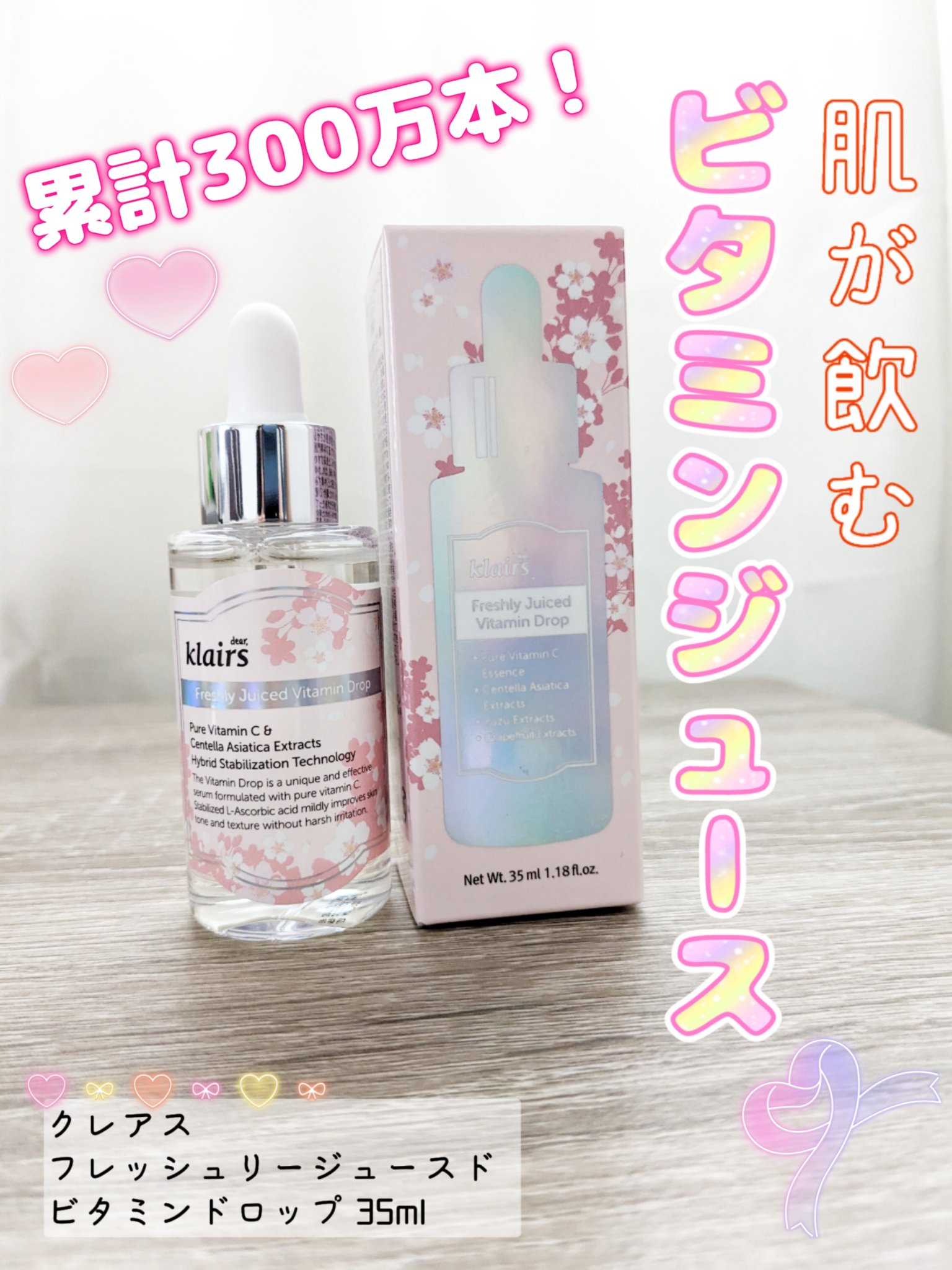 Klairsフレッシュリージュースドビタミンドロップ300万本売れたクレアスの代表製品🤍酸化を隠すために着色されているビタミンC製品が多い中、クレアスは着色していない無色透明のビタミンC🍋ビタミンは強力な抗酸化作用を持っているため、日焼け後...