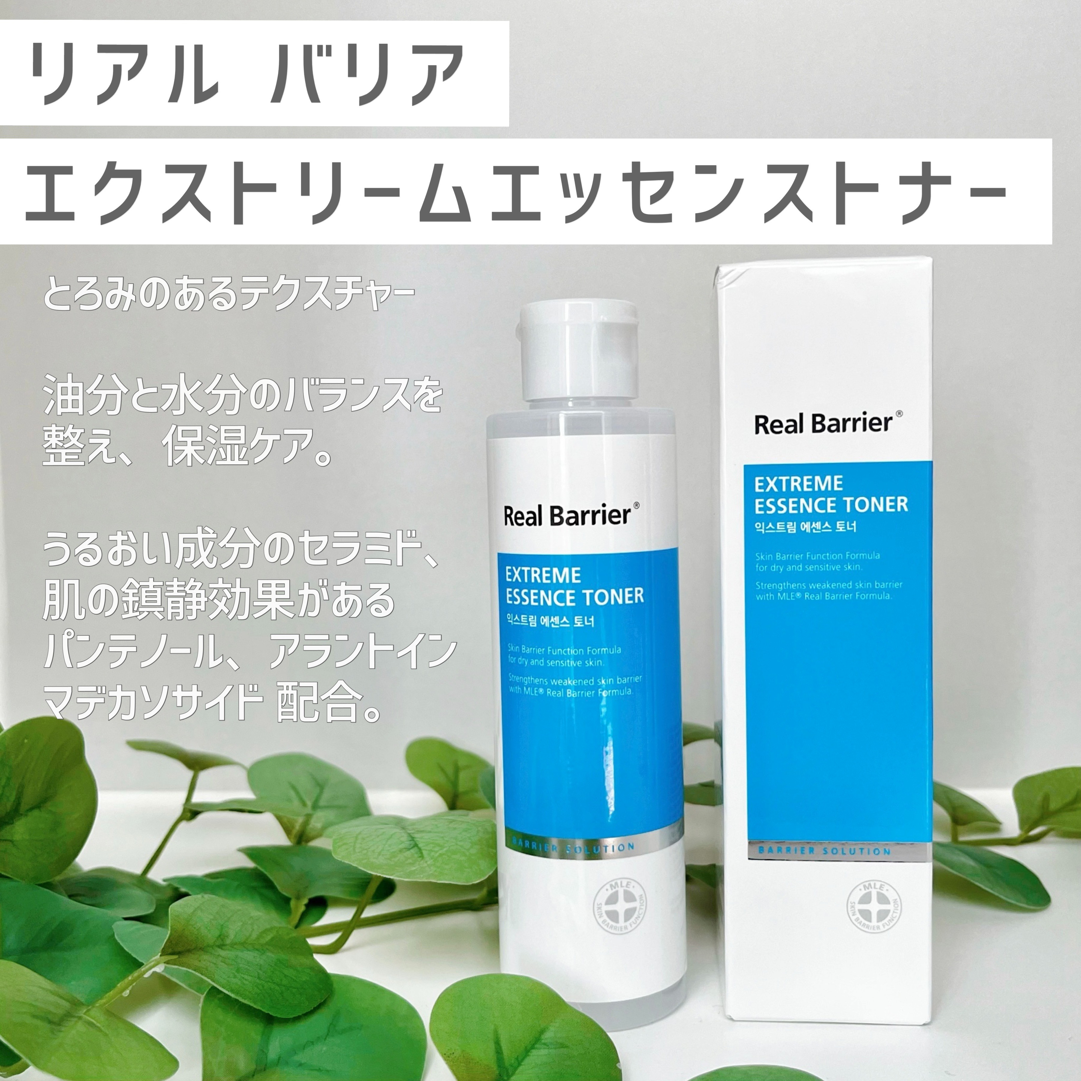 超敏感肌・乾燥肌さんにおすすめ💙 リアルバリアのエクストリームシリーズにはオリジナルとライトがあって、今回使うオリジナルは濃厚でとろみのあるテクスチャーが特徴! 肌バリア強化に独自開発オメガセラミド採用! オメガセラミド含有とセラミド•コレステロール•脂肪酸の保湿で肌バリア強化💙 とろみはありつつもさらっとした使用感で使えるトナー!べたつきなく、重みは無いのにしっかり保湿はしてくれるから1年中時期を選ばず使いやすいと思った!