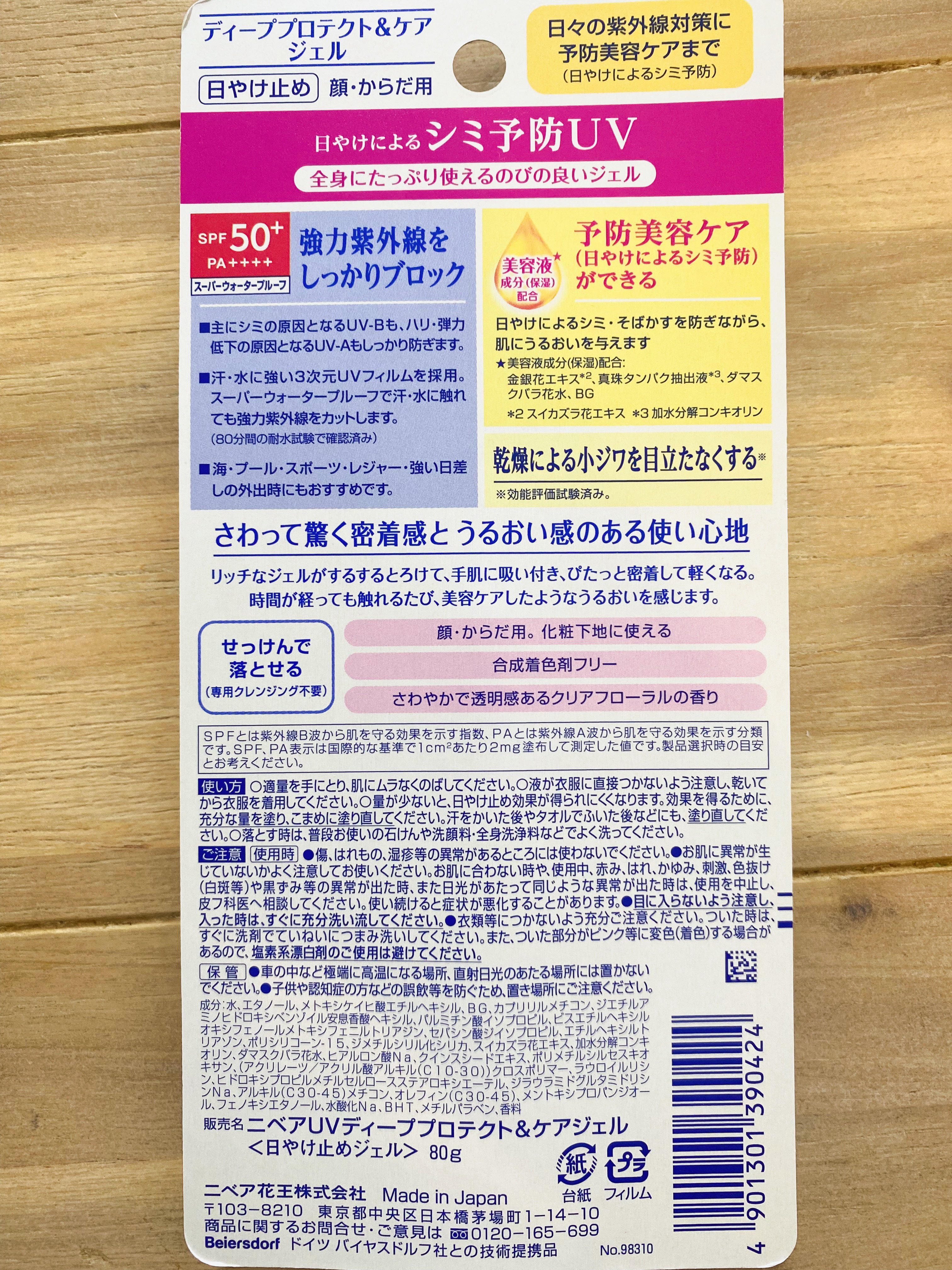 ニベアUVディーププロテクト&ケアジェル『新!日やけによるシミ予防UV』全身たっぷり使えるジェルSPF50+/PA++++/UV耐水性★★・予防美容ケア(日やけによるシミ予防)ができる・美容液成分(保湿)配合・乾燥による小ジワを目立たなくする...