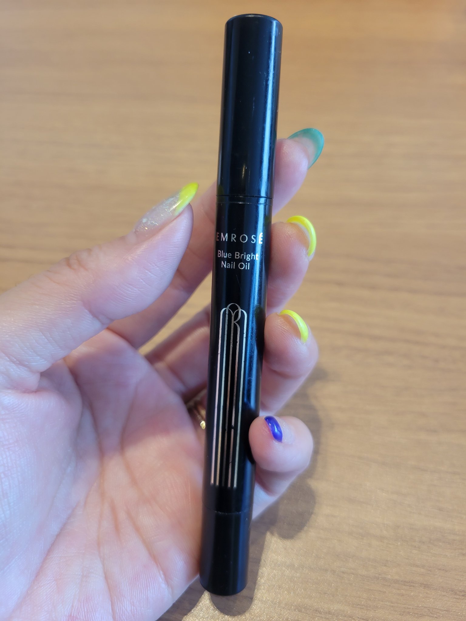 一見してネイルオイルとは分からない、とても高級感溢れるデザインです。 ペンタイプなので仕事の合間にこっそり塗っててもバレません(笑)持ち運びにも便利です。 スっと馴染んでベタつかないので一日に何度も塗れます。 香りがキツいネイルオイルが多い中、控えめなのも好感が持てます。 使い出してから2本目ですが、ネイル持ちも良くなった気がしますし、爪も割れやすかったのが丈夫になった気がします。 調べてみると植物由来の成分がとても多く含まれているようなので、全体的にみて、コスパも最高だ思います