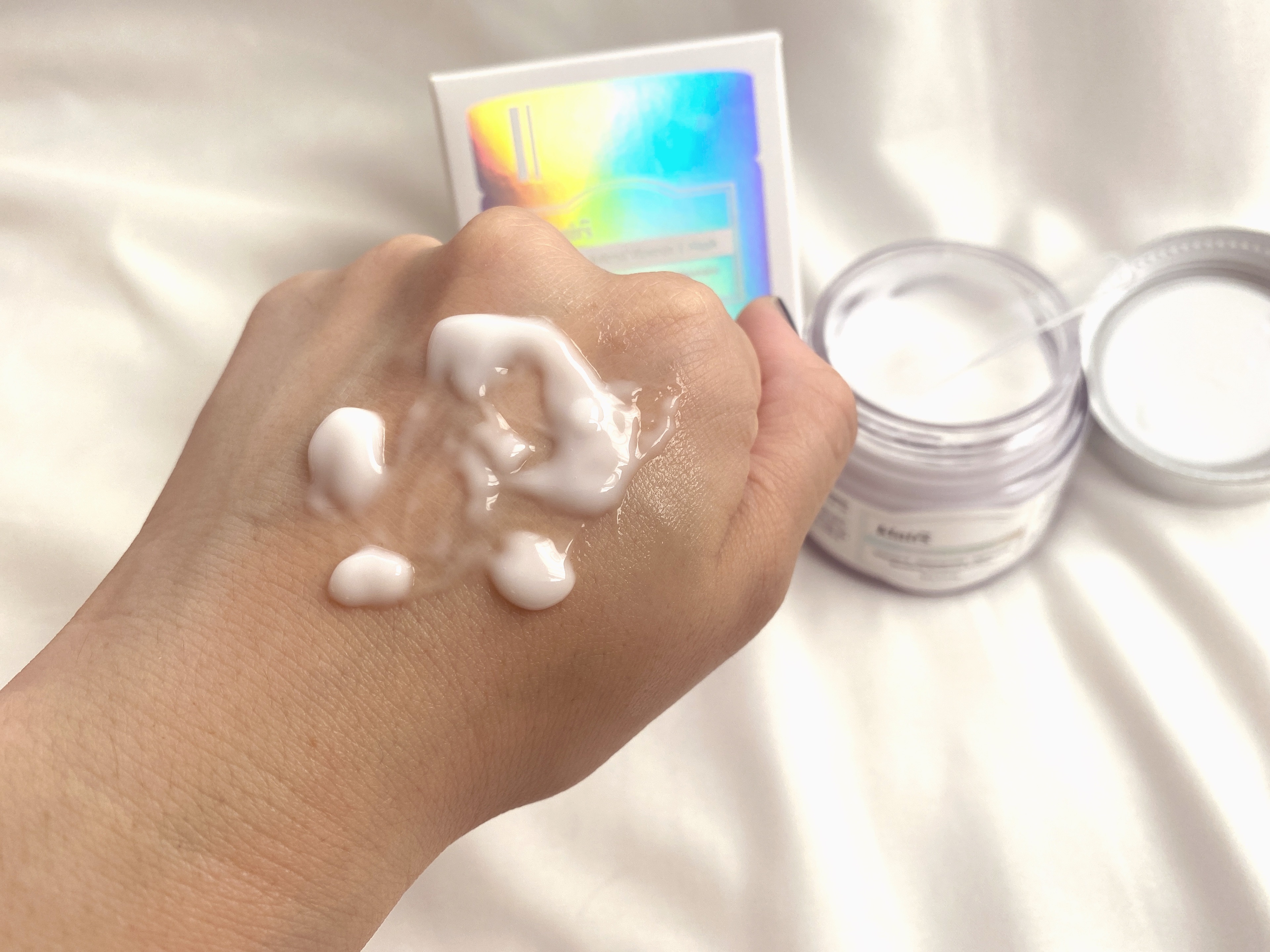 ビタミンE・ナイアシンアミド・アデノシンなど 明るく透明感のある若々しい肌へ。 杏仁豆腐みたいなテクスチャーも面白い。乾燥が気になる日にはたっぷり塗ってプルプル肌に。 ほんのりラベンダーのような香り。ビタミンチャージセラムとセット使いでさらにサポートしてくれるそう^ ^