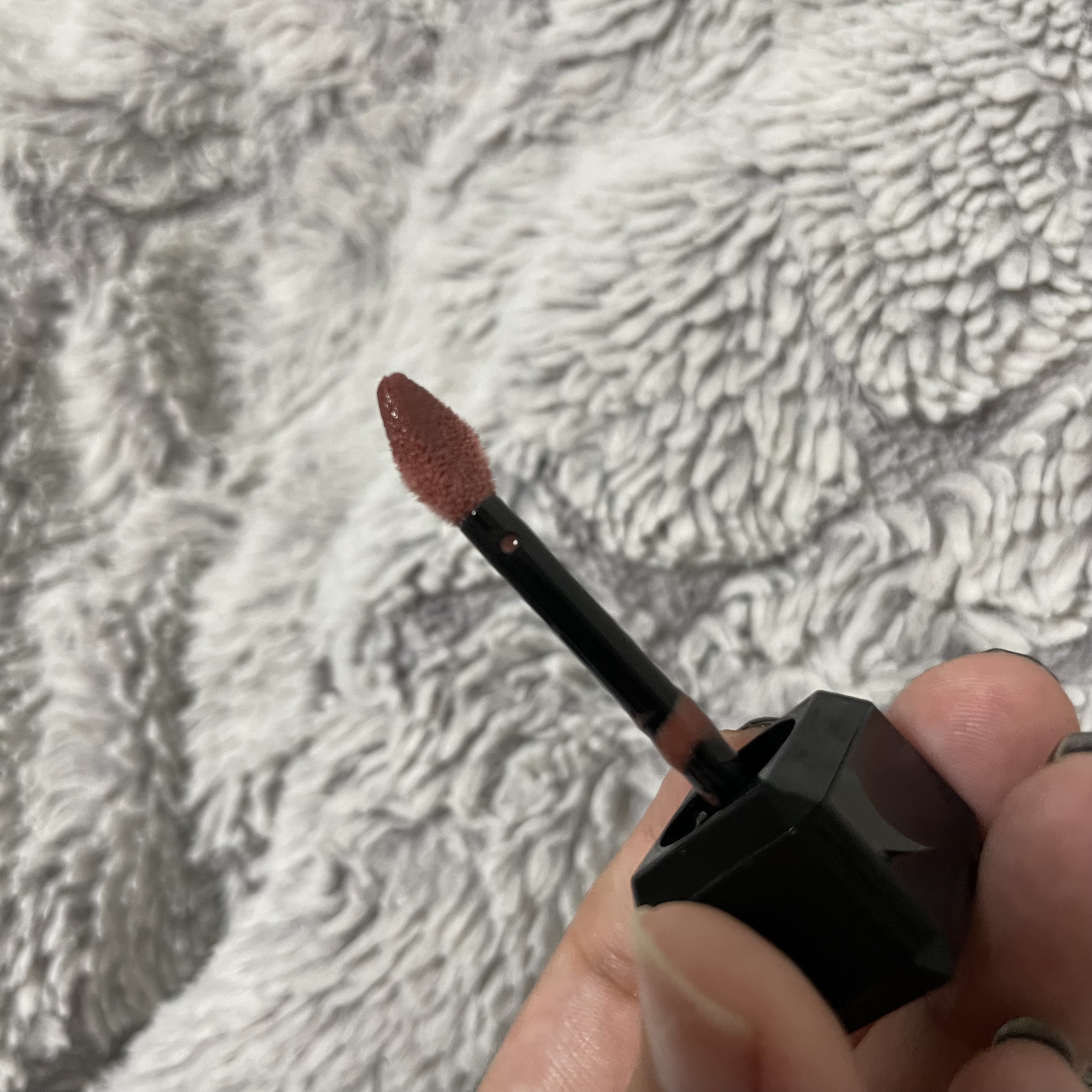 塗ってみると思ったより暗くなく人の唇の色に近いので普段使いしやすいと思いました。 私は唇に色が欲しい方で、少しくすみ系が好きなので持ってるリップに重ねてつけてます!他の人と被らない自分だけのリップを作れるので、大変気に入ってます🥰 プランプリップですが全然痛みはなく、少しミントが効いた歯磨き粉を使って歯磨きをした後(?)くらいのスースー感です。 塗りやすいチップで、液体をリップの入り口の部分で結構落としてくれるので塗りすぎることはないです。 これ一つで大人っぽく上品になれるので、これから愛用します✨