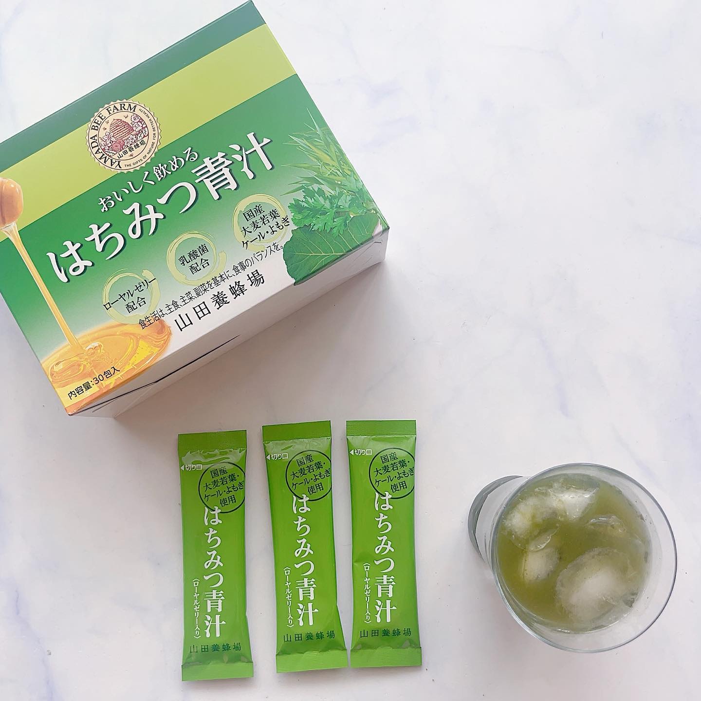 国産の大麦若葉、ケール、ヨモギを使用し、完熟はちみつで美味しく仕上げた青汁。 1日の野菜不足分を2包で補えるそう。 生きたまま腸まで届く有胞子性乳酸菌が1億個、独自開発のはちみつ乳酸菌YB38が225億個と、腸内環境にも働きかけてくれる。 さらに、ローヤルゼリーも30mg配合。 ほんのり甘くて、すごく飲みやすい! 牛乳や豆乳に混ぜるとさらに青汁感が減って、ゴクゴク飲める。 ヨーグルトやスープに混ぜてもおいしい☺ 青汁が苦手な方にこそ、ぜひ試してみて欲しい✨