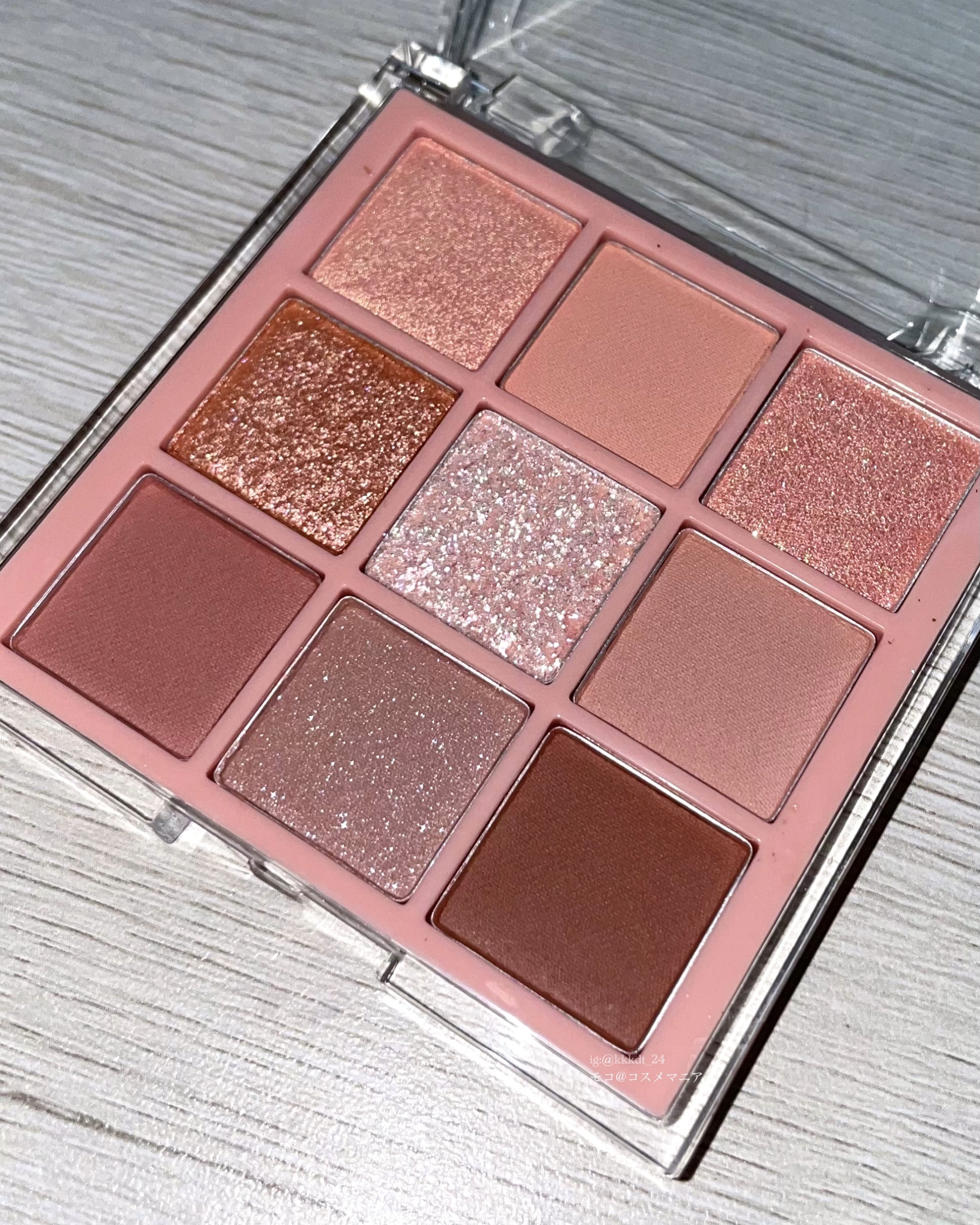 その日の雰囲気によって多彩に活用できる 9色のアイシャドウパレット✨ ミルククッキーのような柔らかいカラーを詰め込んだ、ソフトブラウン陰影カラーシャドウです。 肌なじみの良いカラーがセットされているのでどの肌トーンにも◎ ラメカラーもギラギラせず繊細でキレイです。