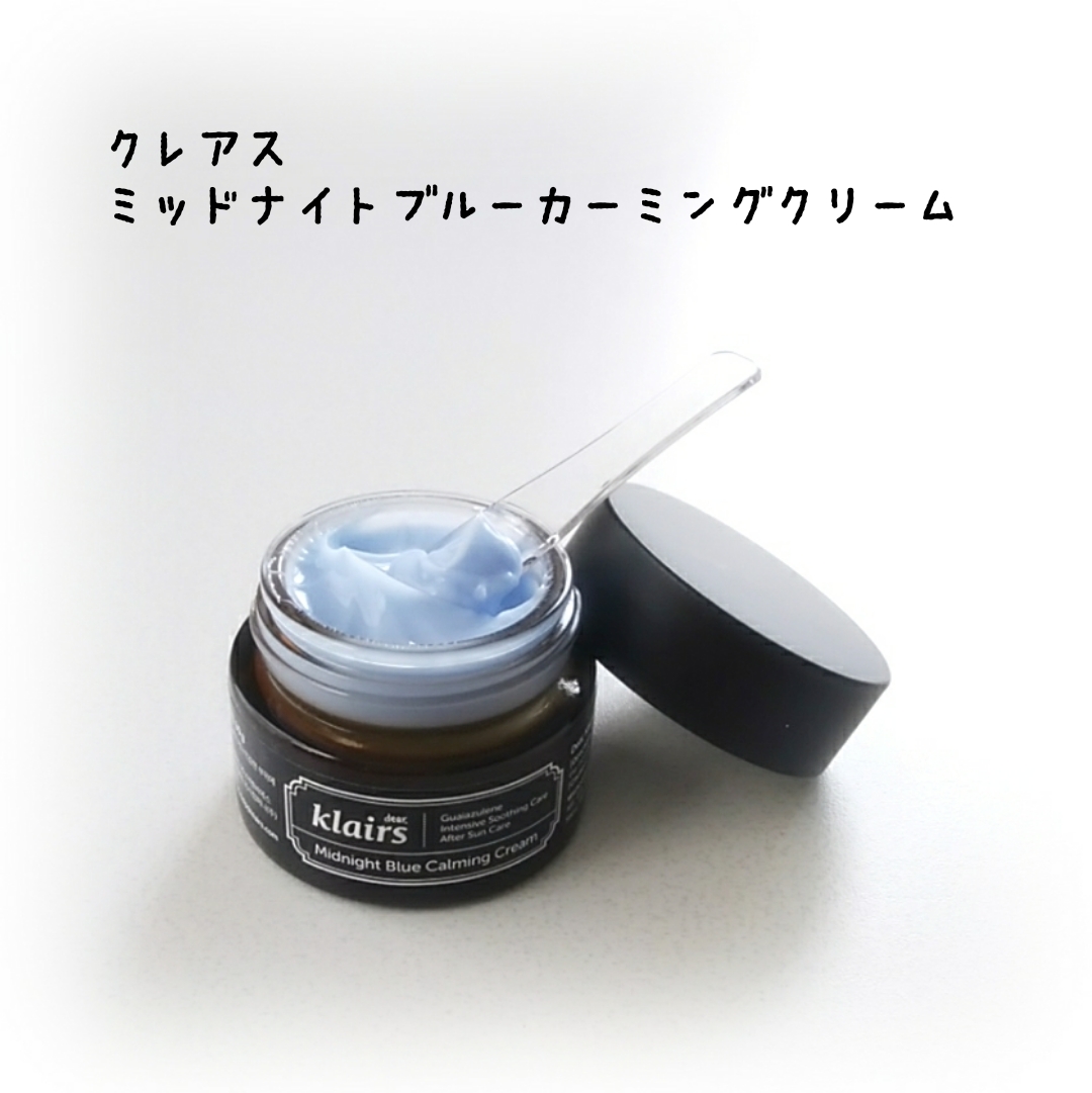 ..〈商品〉klairsミッドナイトブルードロップミッドナイトブルーカーミングクリームクレアス様よりお試しさせていただきました🌟こちらのブルーラインはグアイアズレンが配合されているため色味が青いんです🟦グアイアズレンはカモミールから抽出した植...