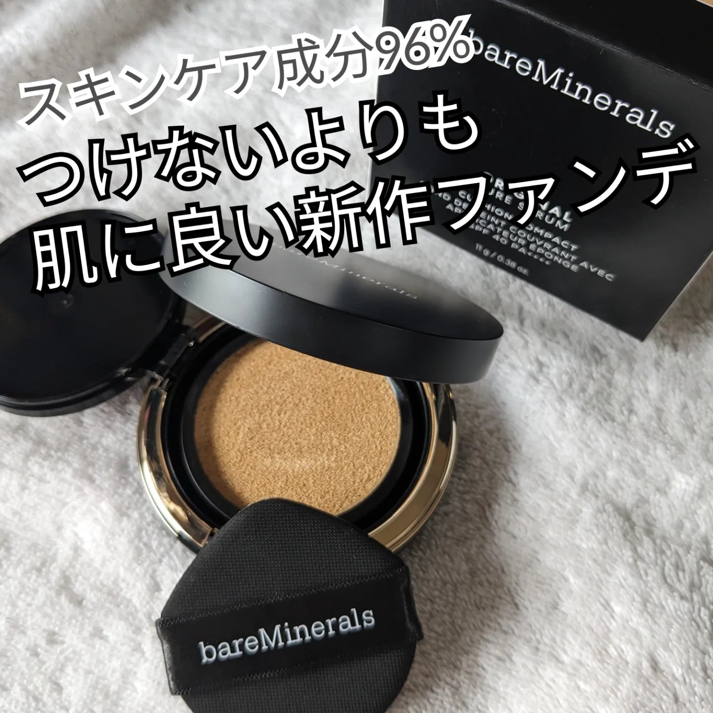 ノーファンデより肌に良い、がモットーの(!)ベアミネラル、初のクッションファンデ、オリジナルピュアセラムカバーアップクッション。SPF40•PA++++このファンデで過ごしていて、テカリっぽくない、自然なツヤ感が気に入ってます!ファンデ単体で...