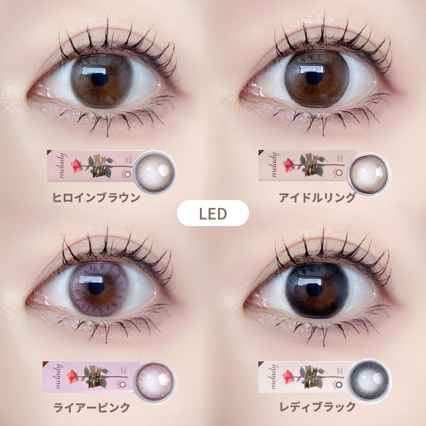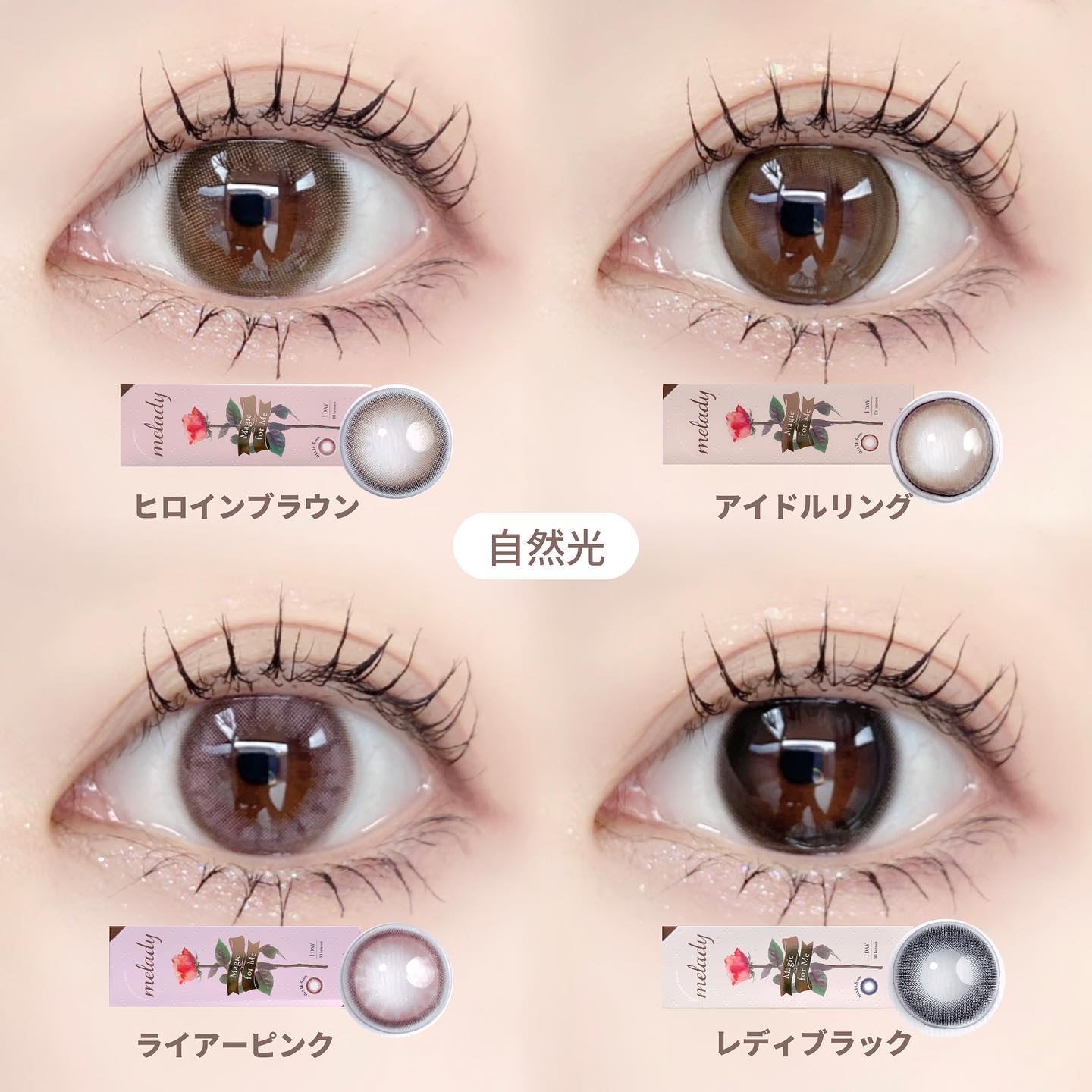 - ※2025年6月以降、商品パッケージ裏面・側面の一部表記を順次変更いたします。尚、これにかかる商品の交換・返品は承っておりません。 ヒロインの瞳の法則♡ ナチュラルなのにしっかり盛れるDIA14.5mm! ■ヒロインブラウン 透明感たっぷりなブラウンレンズ。瞳に馴染む色だからとってもナチュラル。 ■アイドルリング さりげない細フチとちゅるんブラウンがナチュラルに瞳を強調♡ ■ライアーピンク ピンクブラウンのフチとムラのあるデザインで立体感のあるきらきらな瞳を演出♡ ■レディブラック じゅわっとぼかした繊細なデザインで透明感に満ちた存在感のある瞳を演出♡ ■プリンセスショコラ しっかり太フチとあまくとろけるショコラブラウンでプリンセスみたいに愛される瞳に♡ ■スターグロー くりっと盛れる太フチとうるみツヤめく水光カラーで光を取りこむキラツヤな瞳に♡ ■Maria Ring(マリアリング) 絶妙細フチと白っぽ透明感グレージュでちょっぴり背伸びした余裕仕込みレンズ♡ ■Mermaid Ring(マーメイドリング) 絶妙太フチときらめき透明感マーメイドグレーでピュアにうるめく美少女な瞳に♡ カラーコンタクトレンズの不適正使用による眼障害の危険性等などがあります。 ●コンタクトレンズは高度管理医療機器です。不十分な洗浄・消毒など不適切なケアや、長時間・交換期間を超えた装用により、アレルギー性結膜炎、角膜感染症、角膜潰瘍等の重篤な眼障害が発生する危険性があります ●ご使用前に取扱説明書を確認してください 使用上の留意事項 ●眼科医院等を受診してからお求めください ●眼に異常を感じたら直ちにレンズ使用を中止し、お近くの眼科等で診察を受けてください ●医師の指示にしたがってご使用ください ●コンタクトレンズを装用する場合、自覚症状がなくても、眼科医院等での定期検査を受けてください ●レンズに不具合がある場合は使用しないでください