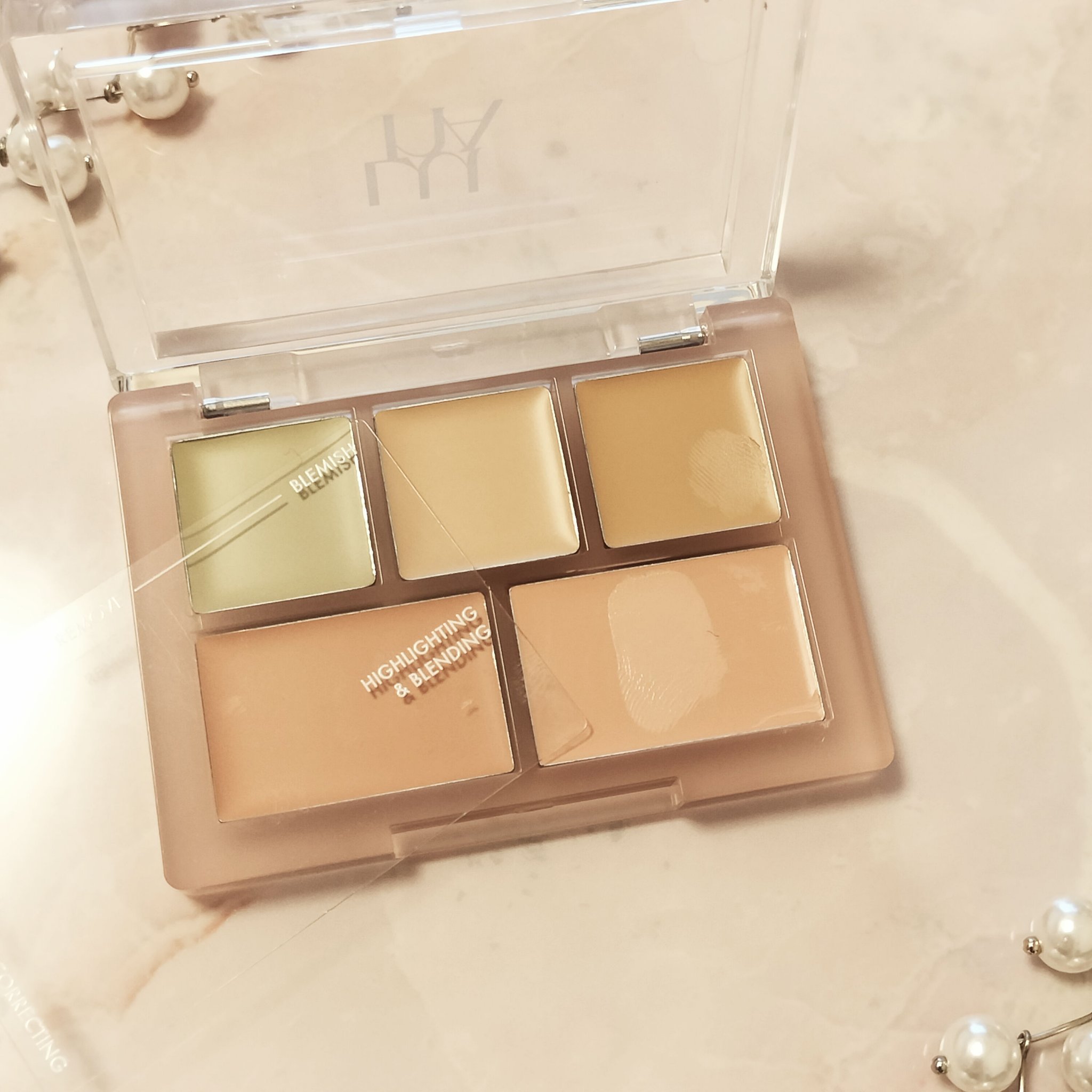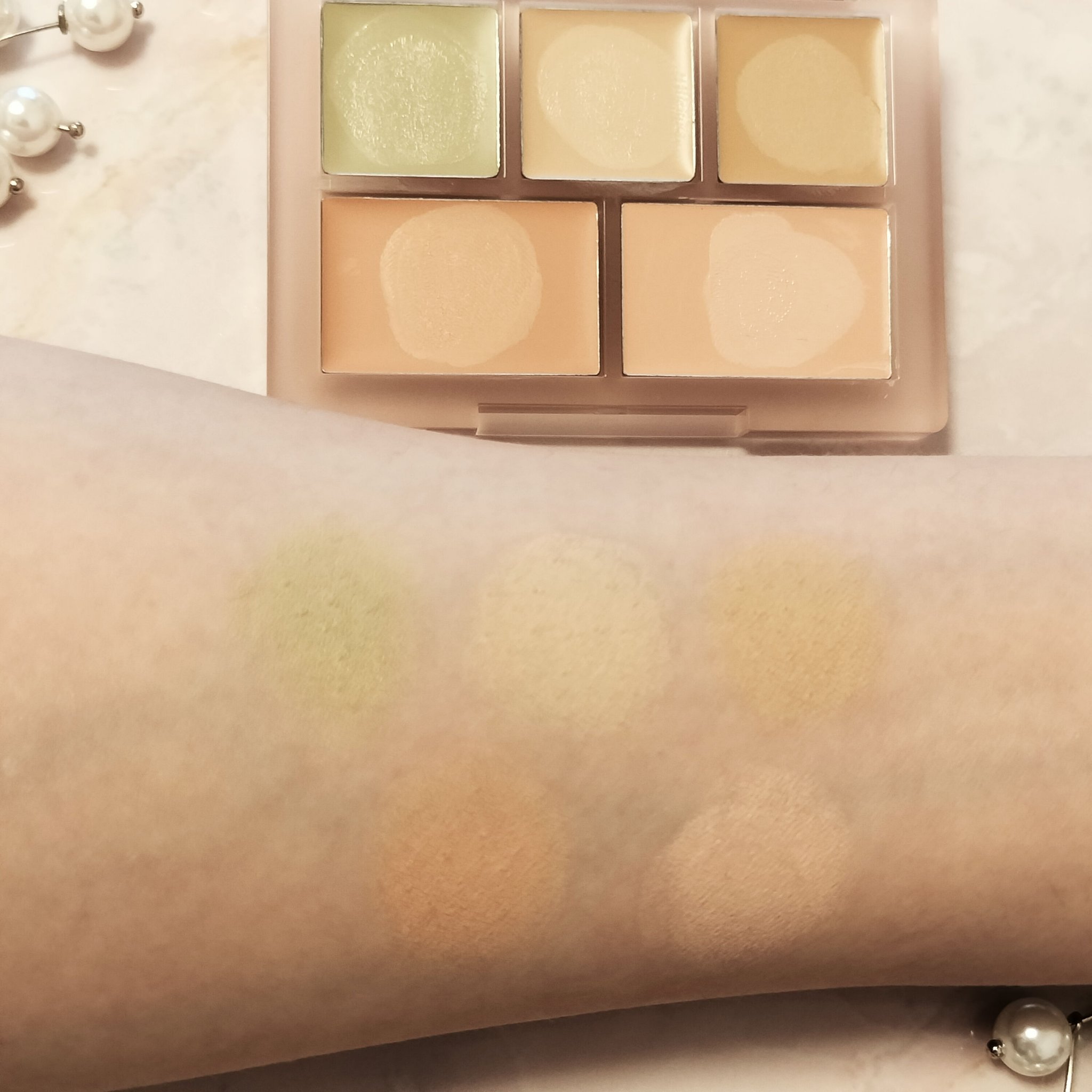 1つのパレットでカバーからカラーコントロールまで、色んな肌悩みを助けてくれるコスパ最強のコンシーラーパレットの紹介です💁 グリーンは赤み消し、ミディアムピーチはオレンジっぽさがあるのでクマ消し、バニラやベージュはくすみ消しやシェーディングとしても使えたりピュアブライトはハイライトのように使うこともできてこれがあれば肌悩みを隠せちゃう🙌 しっとりとしていて密着感はありますが、こすれには弱いかも。自分好みの混ぜ方を見つけて慣れるまでは試行錯誤するのも楽しみの1つでは…✨😊