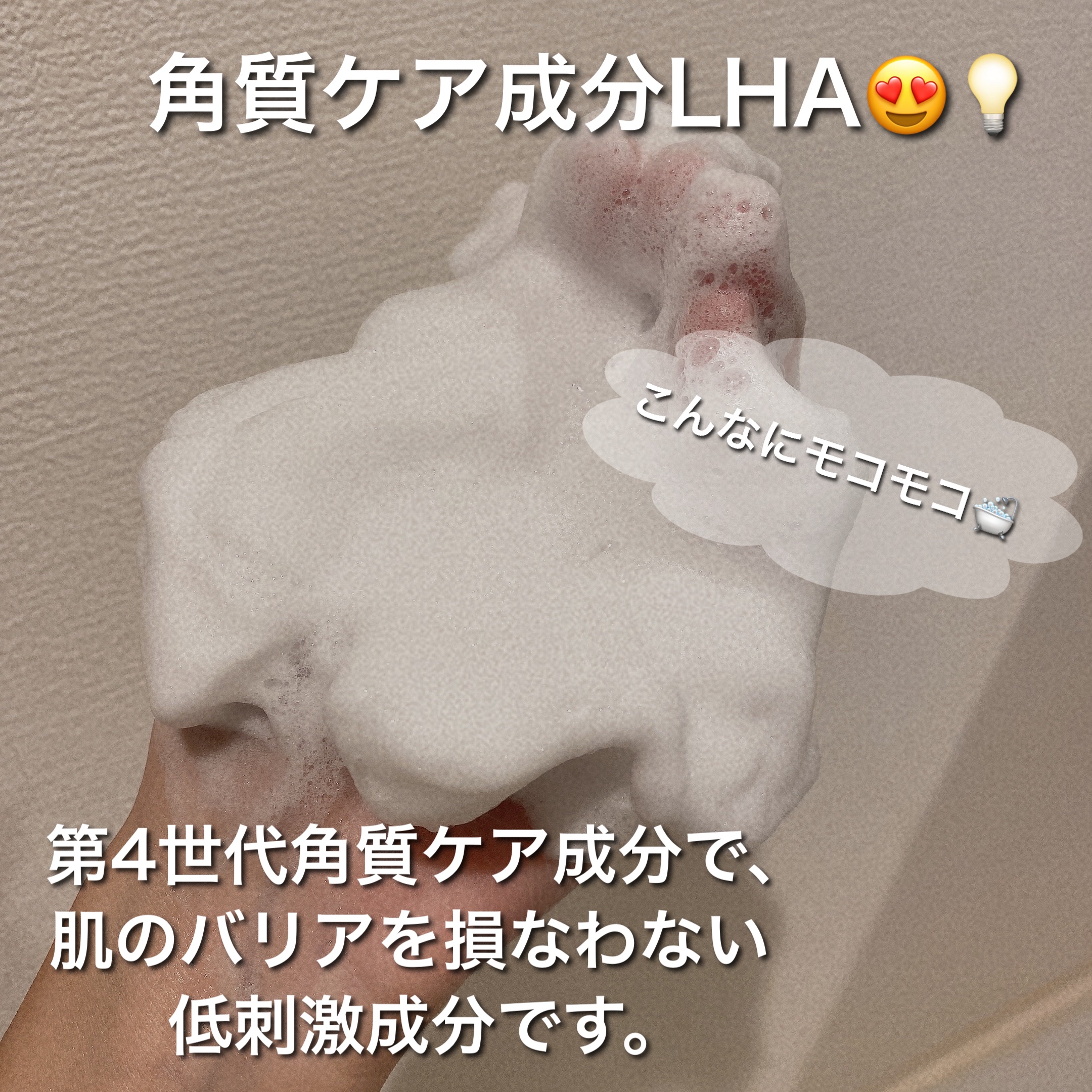 たった一回の使用で96%洗浄! 毛穴の中の老廃物洗浄力検査済みだそうでサッパリと洗えてしっとりと保湿感もあります 角質ケア成分LHAとは韓国の高級エステ店で有名になったLHAはAHA BHA PHAの後を継ぐ第4世代角質ケア成分で、肌のバリアを損なわない低刺激成分だそう 香りは心地よく広がるウッディな香りです 大容量なのに、高コスパ
