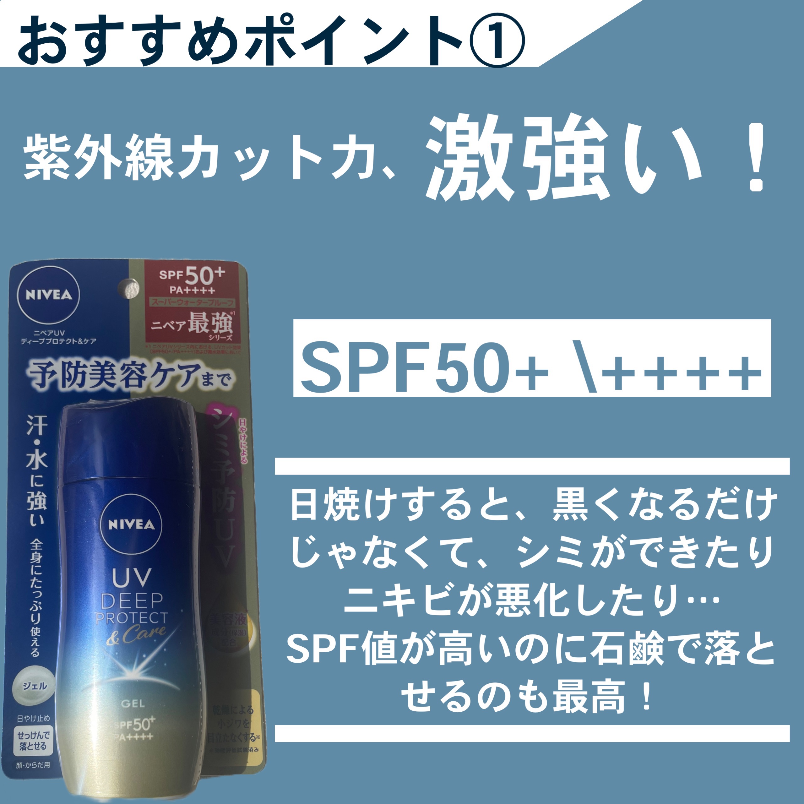 MimiBeautyのイベントでいただきました☀️🩵紫外線徹底ブロック!ニベアUVディーププロテクト&ケア😎SPF50+/PA++++/UV耐水性★★という頼もしすぎるスペックのニベアさま🥹👏🩵エッセンスみずみずしく伸びてピタッと密着!白浮き...