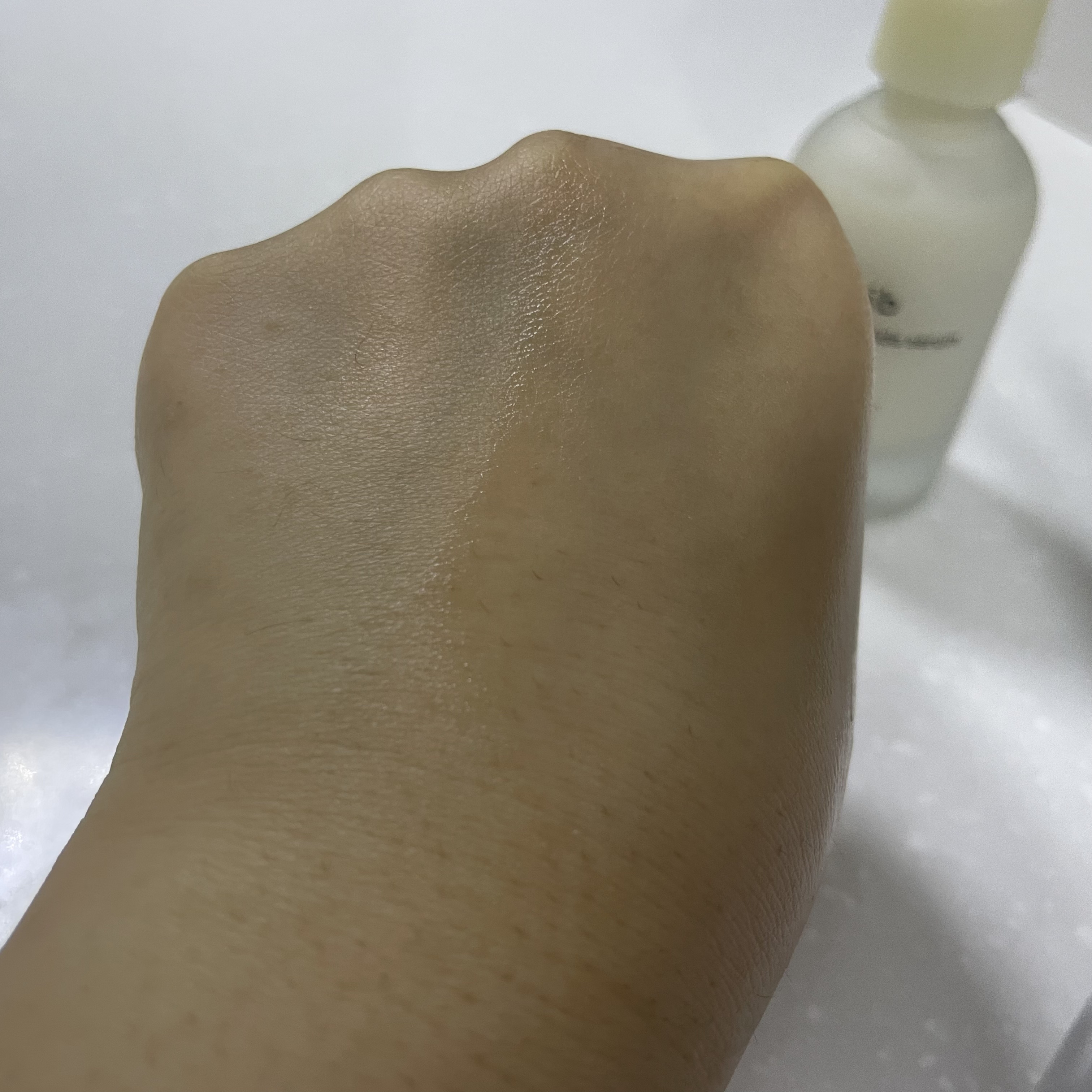 こちらは洗顔後、ファーストステップに使うエッセンスです。 軽く叩き込むように使用するとキメと透明感が出ると書いてあったので、コットンで叩き込むようになじませています。 エッセンスという名前がついているのですがとても軽く、軽い化粧水のような感じです。 肌にのせると外側から保湿されている感じではなく肌の内側に浸透して保湿されている感じがします。 -トーンアップ-くすみ解消-色素沈着解消-透明度アップなどの効果があるそうです!! 導入美容液なので、化粧水やアンプルは今使ってるそのまま使用できるので夏から乾燥する冬まで同じスキンケアを使用できます!! こちらはエッセンスですが軽いので肌に馴染みやすくみずみずしい、うるおいのある肌になります。