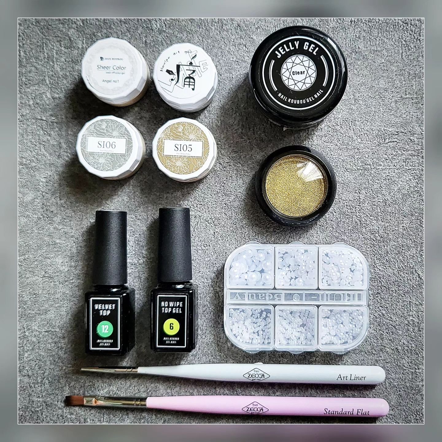 5ミクロンより細かい粒子! 4ミクロンマグネット🧲✨ 粒子の動きも早いし うるうるちゅるんも簡単💕 ①4ミクロンマグを塗布し真ん中を光らせ硬化 もう一度繰り返す ② JELLY GELを乗せ斜めにピンセットで押し スタッズを交差している所に乗せ硬化 溝が無くならないように薄くトップをして硬化\完成/ リボン- ①4ミクロンマグを塗布し、輪になるよう光りを 動かし硬化 パーツを乗せ\完成/ フレンチ- ①夏03を一度塗り 4ミクロンマグをフレンチに乗せフレンチのカーブに沿って 光らせ硬化 パーツを乗せ\完成/